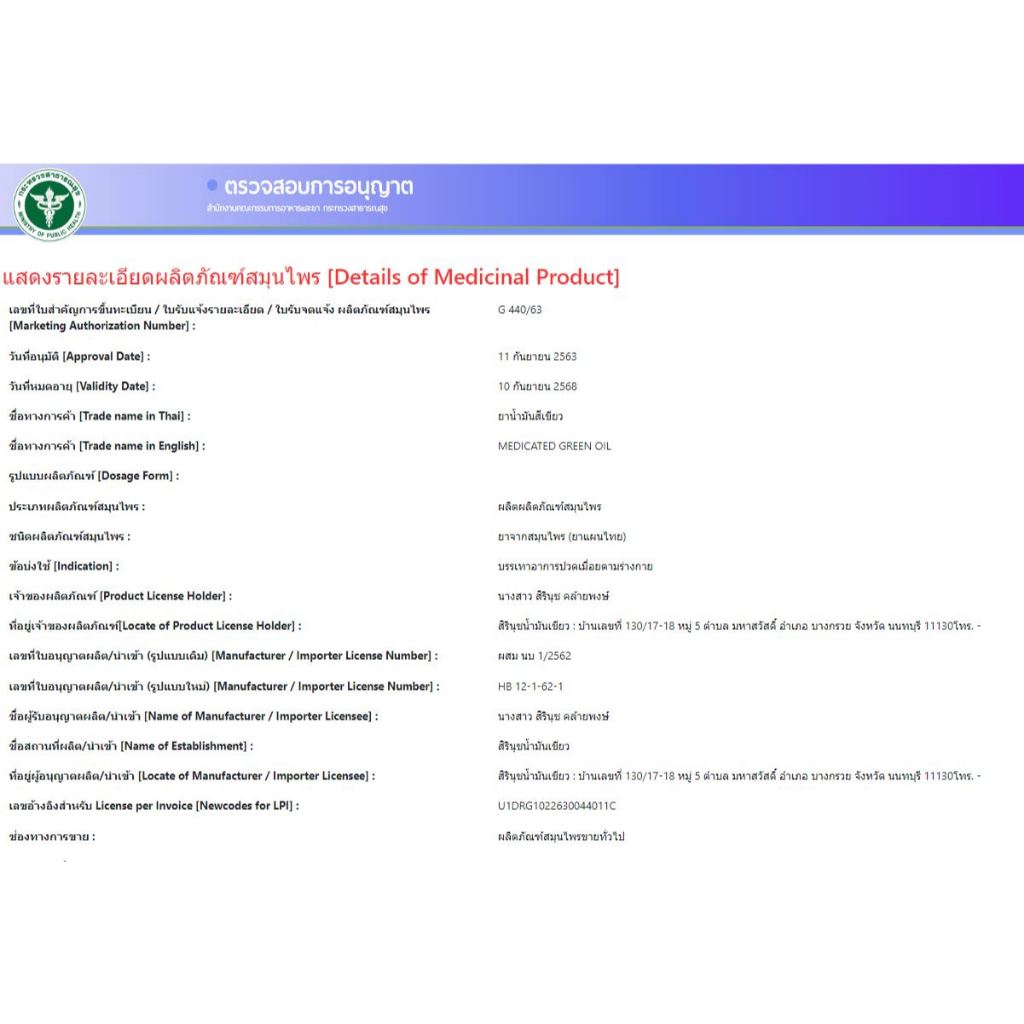 (แพ็คคู่) น้ำมันสีเขียวสิรินุช Medicated Green Oil 4 ซีซี (1 ขวด) + 24 ซีซี (1 ขวด)