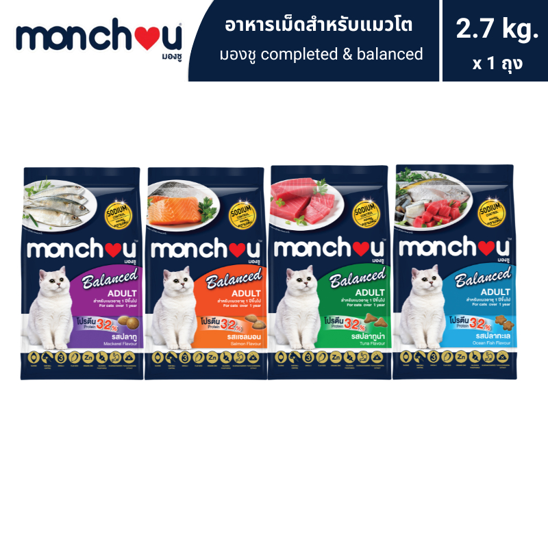 monchou มองชู อาหารแมวแบบเม็ดสำหรับ "แมวโต / Adult" (Cat Dry Balance) สูตร Balanced 2.7 กิโลกรัม