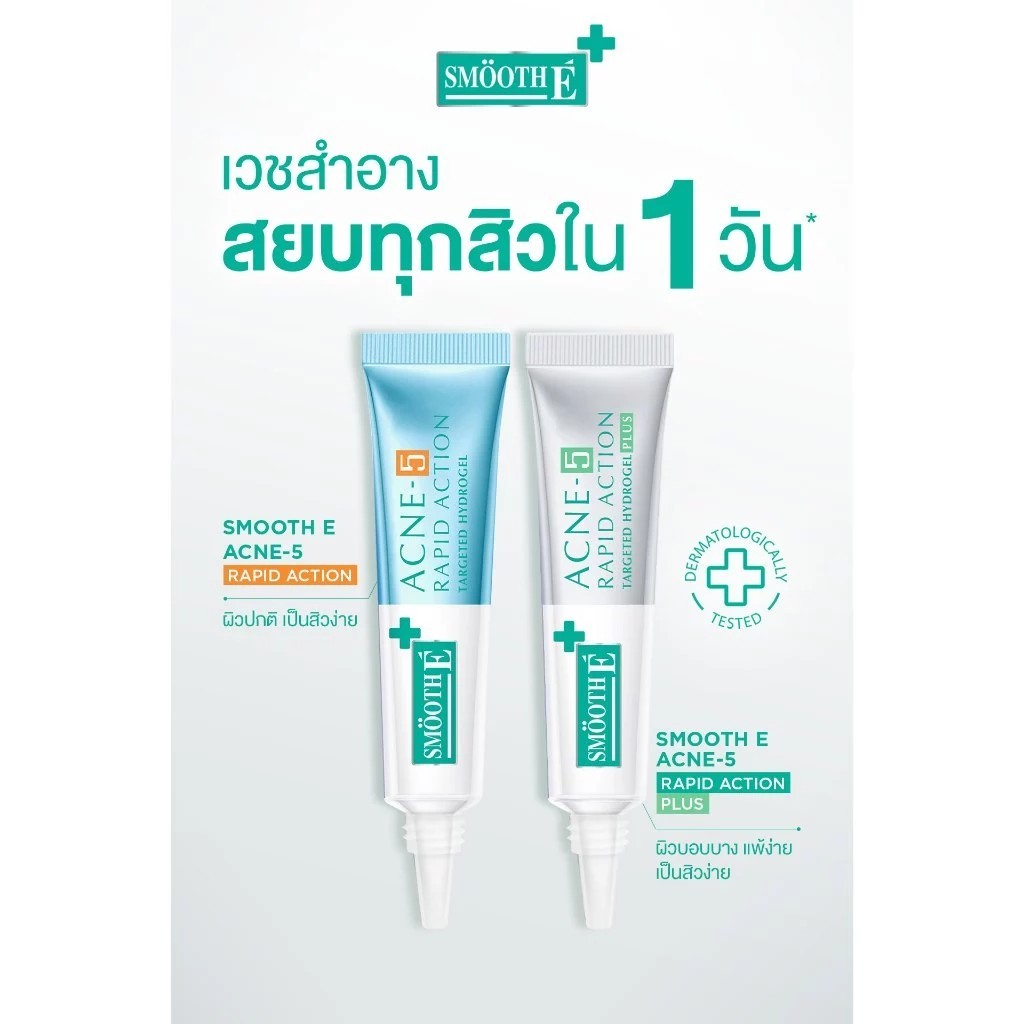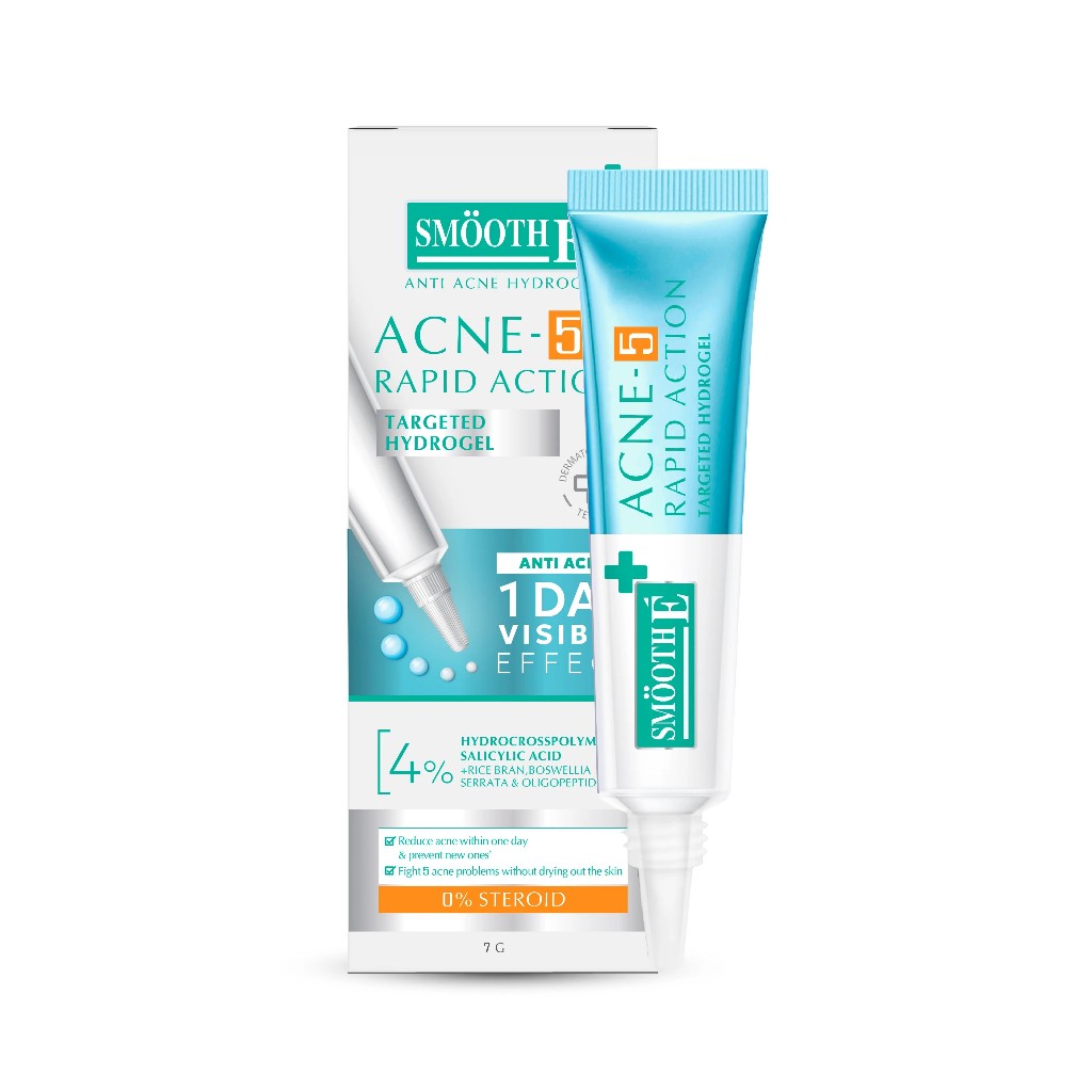 [ใหม่!] Smooth E Acne-5 Rapid Action 7g. / 10g. เจลเเต้มสิว สำหรับผิวเป็นสิวง่าย กล่องคาดส้ม