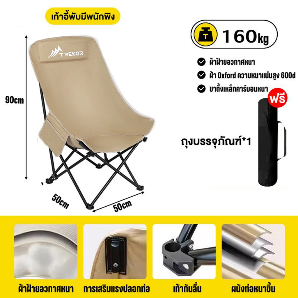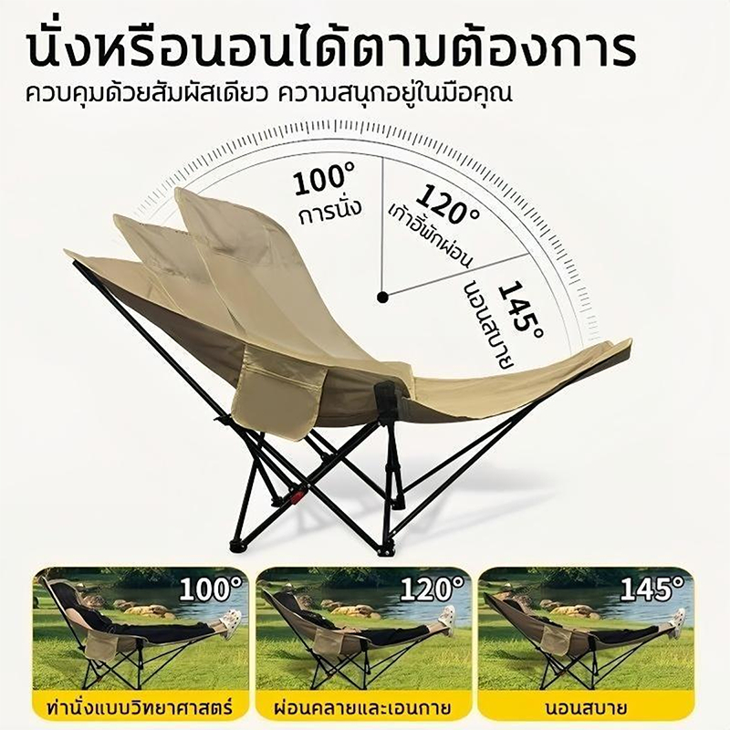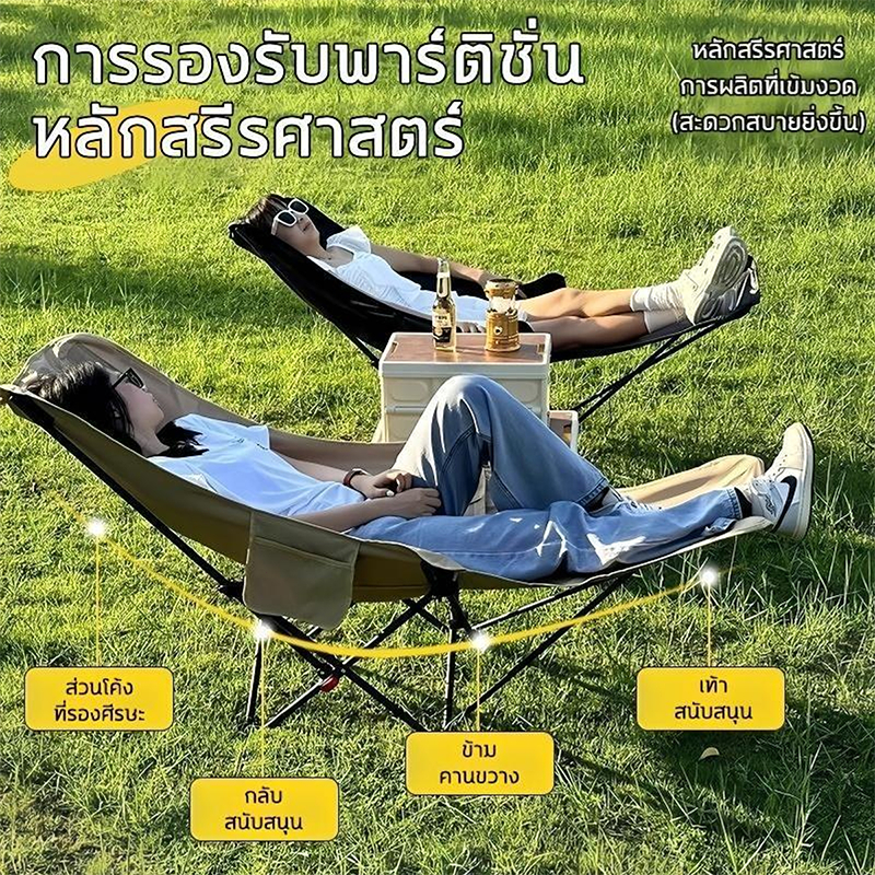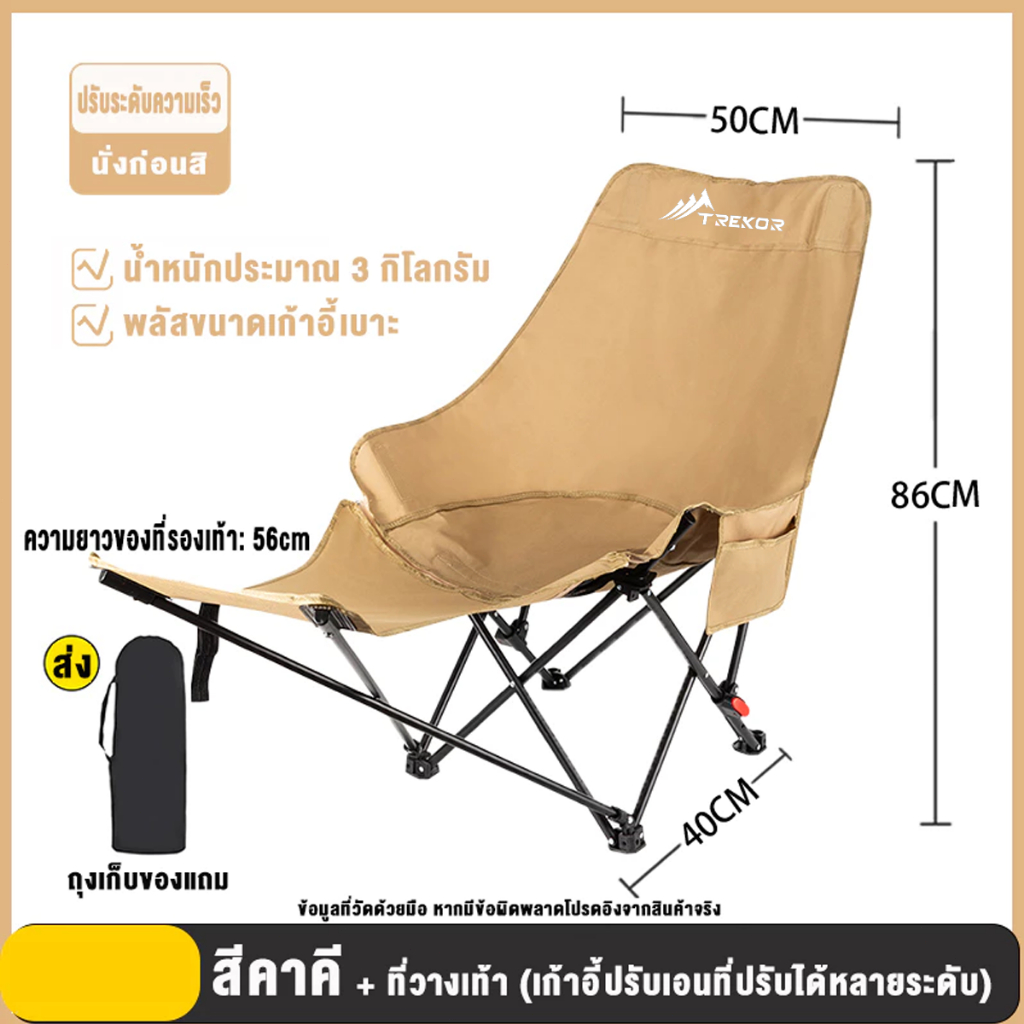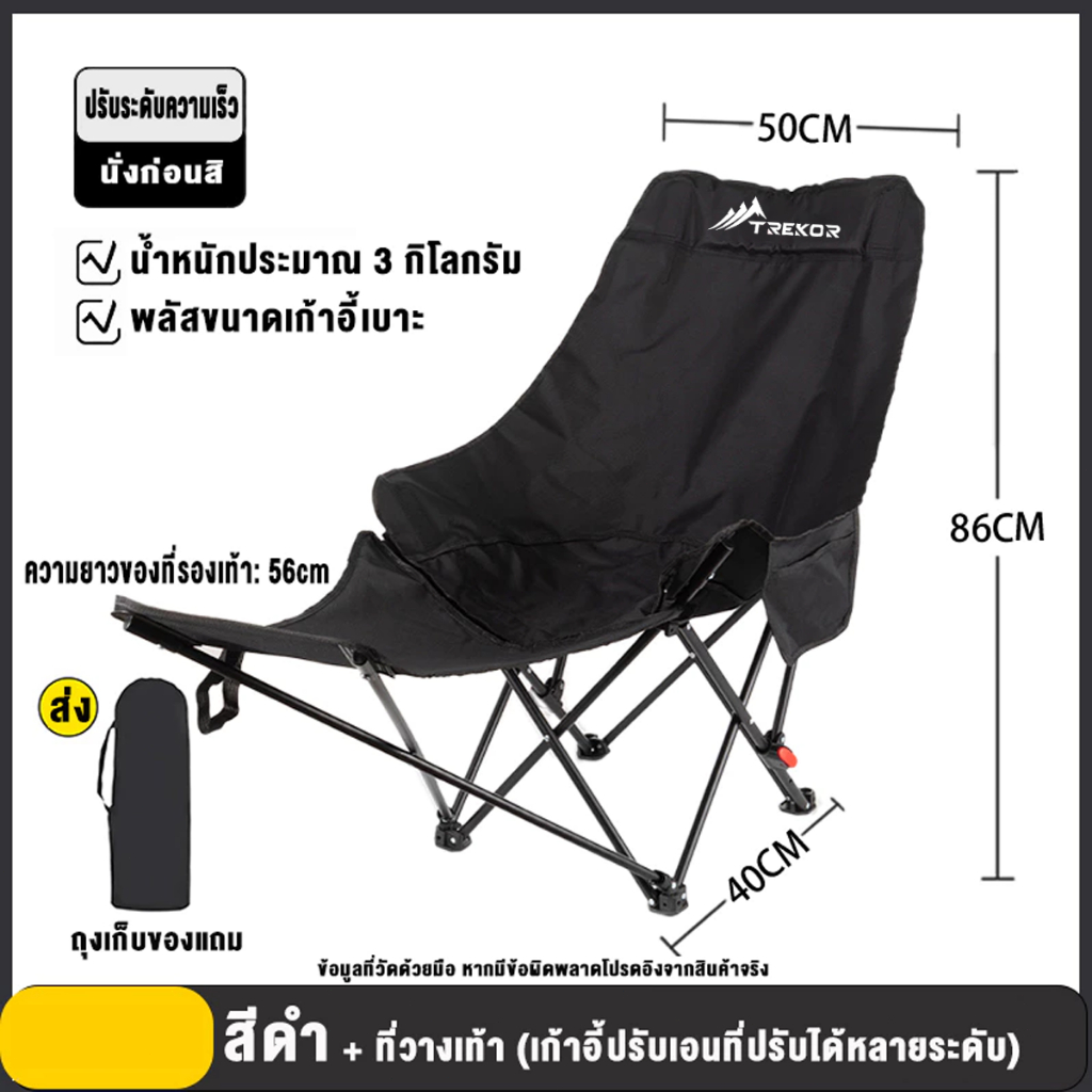 เก้าอี้แคมป์ปรับได้ เก้าอี้พับแบบพกพา มีที่วางขาสามารถนอนได้ เก้าอี้แคมป์ปิ้ง แถมถุงเก็บ รับน้ำหนัก300KG เก้าอี้สนาม