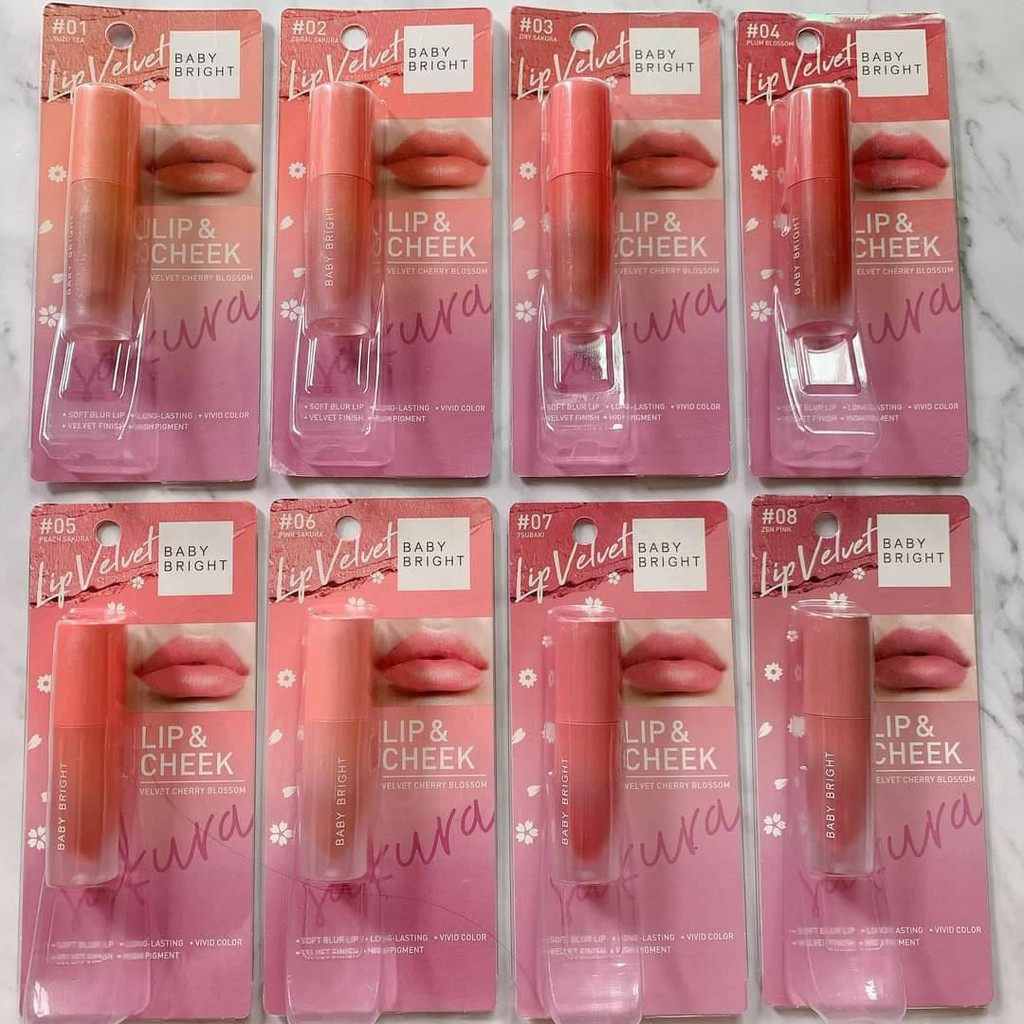 Baby Bright Sakura Lip & Cheek Velvet Cherry Blossom 2.4g ลิปสติก เบบี้ไบร์ท ซากุระ ลิปสีส้มอิฐ