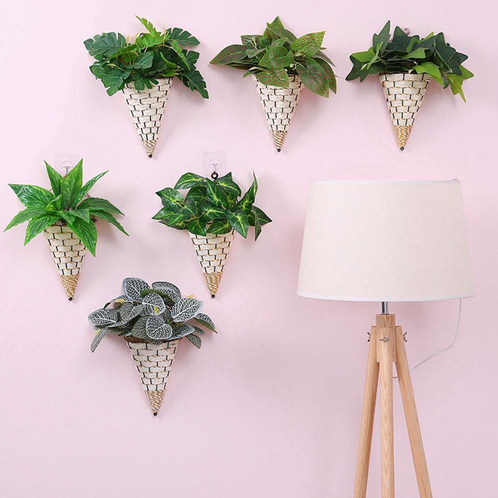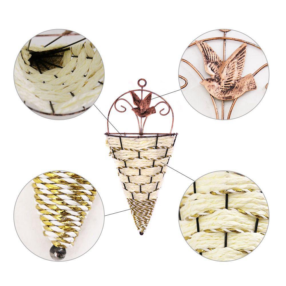 Sweetjohn กระเช้าดอกไม้หวายธรรมชาติหวายหวายสวนติดผนังพืชสีเขียวตกแต่งกลางแจ้งในร่มกระถางดอกไม้