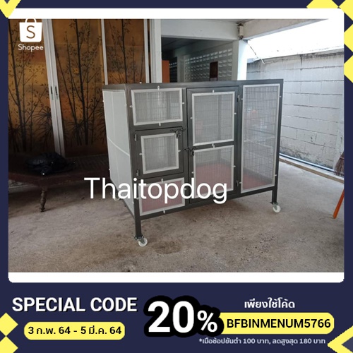 กรงสุนัขพื้นไม้ สำหรับสุนัขใหญ่พร้อมมุ้งลวด+ล้อเลื่อน ขนาด 150*105*130 cm (สีดำ)