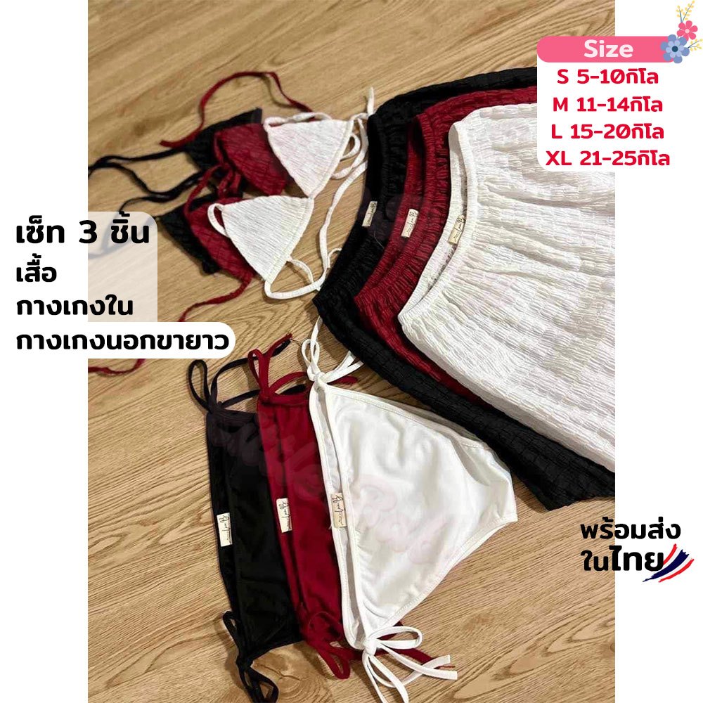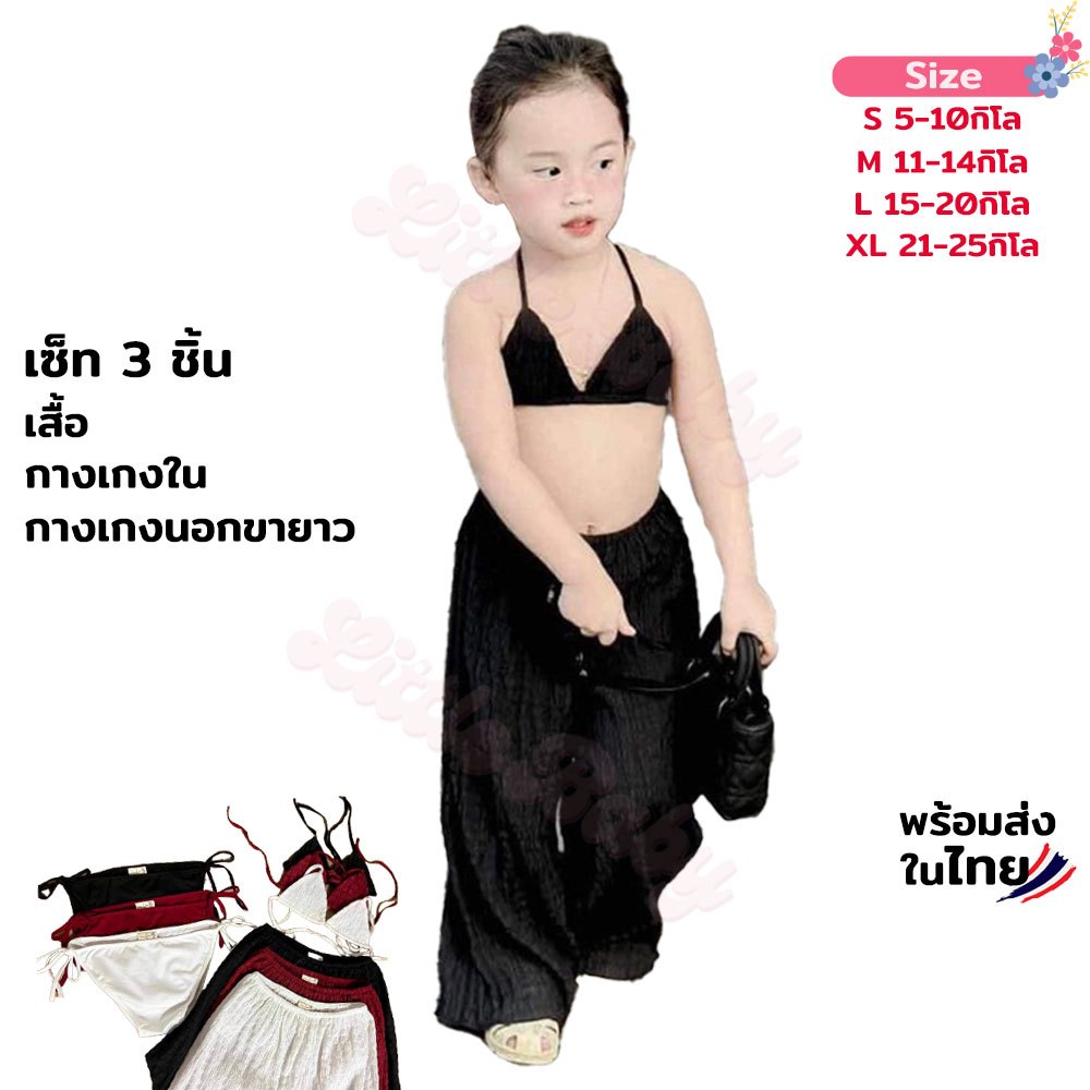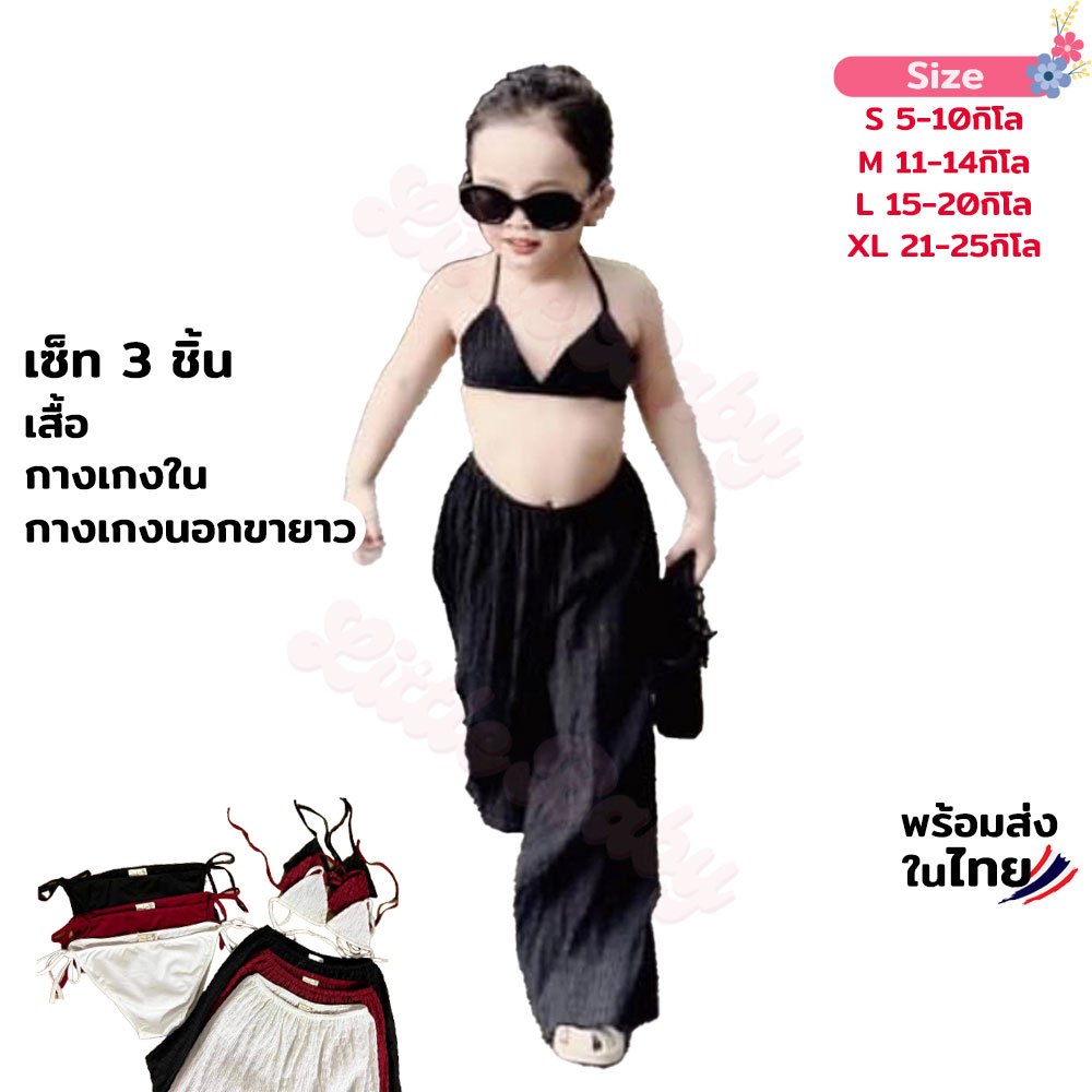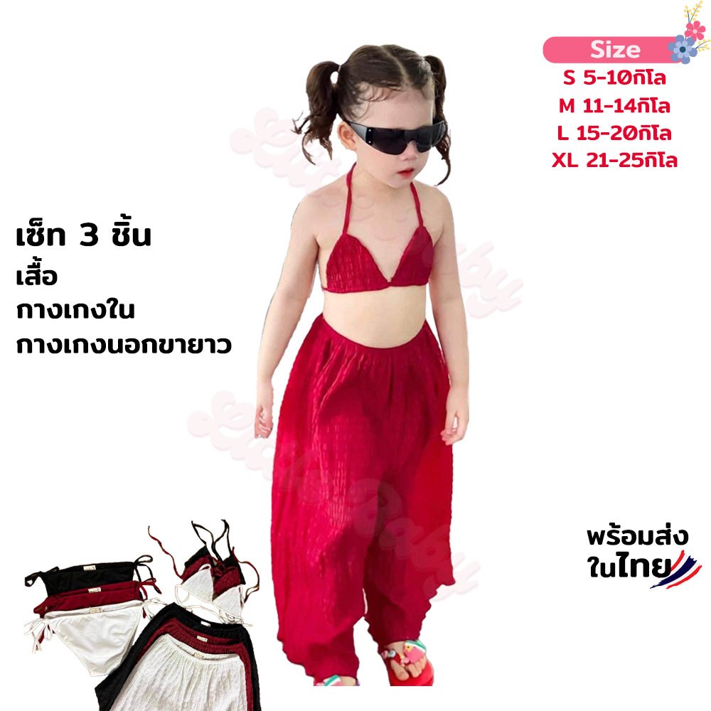 ชุดว่ายน้ำรับSummerลูกสาว 3ชิ้นเสื้อบิกินี่+กางเกงบิกินี่+กางเกงขายาวสีดำ,แดงน้ำหนัก5-25กิโล รหัสKOQ