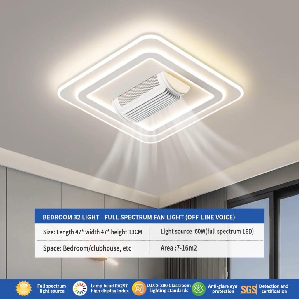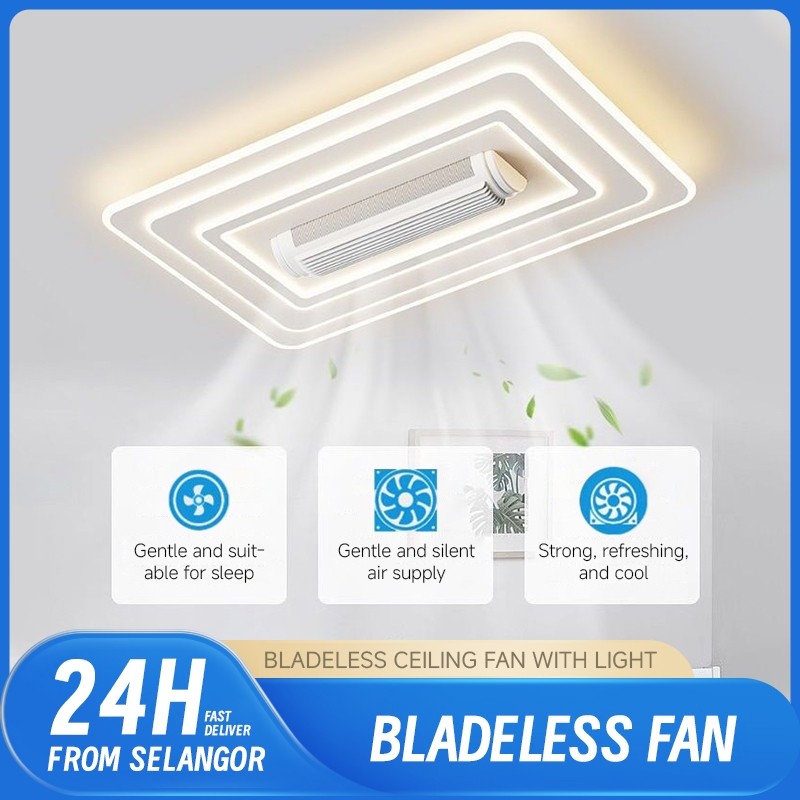 ⚡จัดส่งจากไทย⚡พัดลมเพดานไร้ใบพัดปรับความเร็วได้พร้อมไฟ โคมไฟเพดานแบบติดเรียบ พัดลมเพดานหรี่ไฟพร้อมรีโมทคอนโทรล