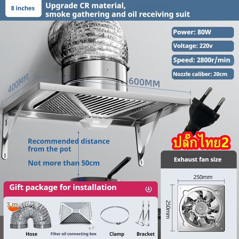 201 CR พัดลมดูดอากาศในครัว เครื่องดูดควันในครัว เตาแก๊สในครัว เตาสแตนเลส เครื่องกรองฟูมน้ำมัน สแตนเลส พัดลม Lampblack