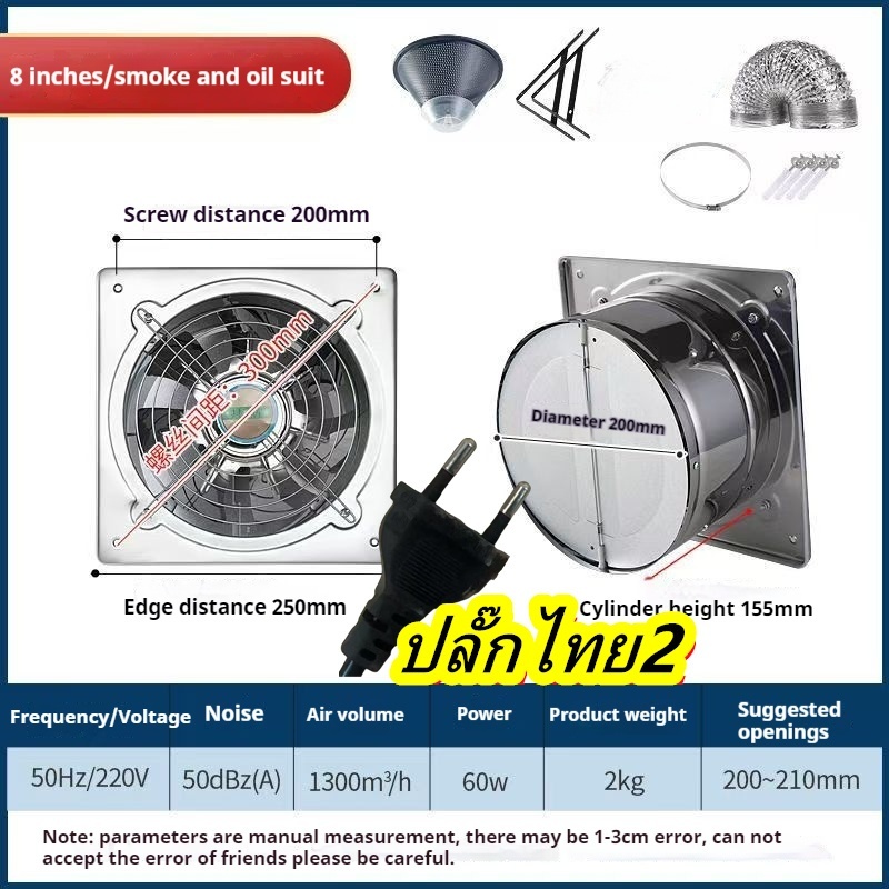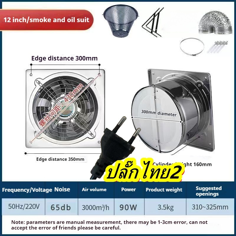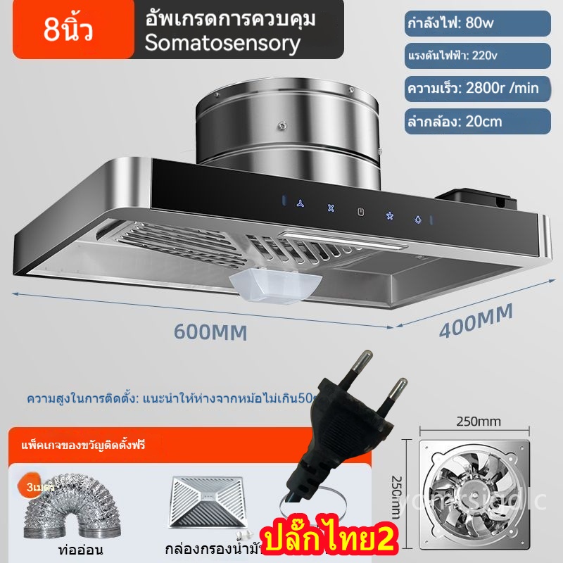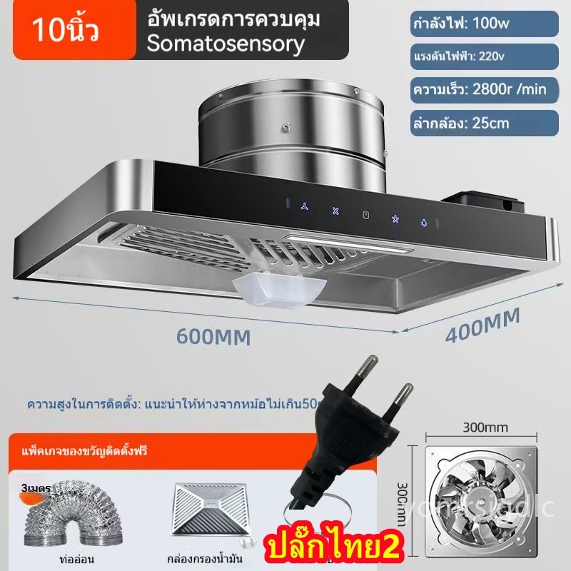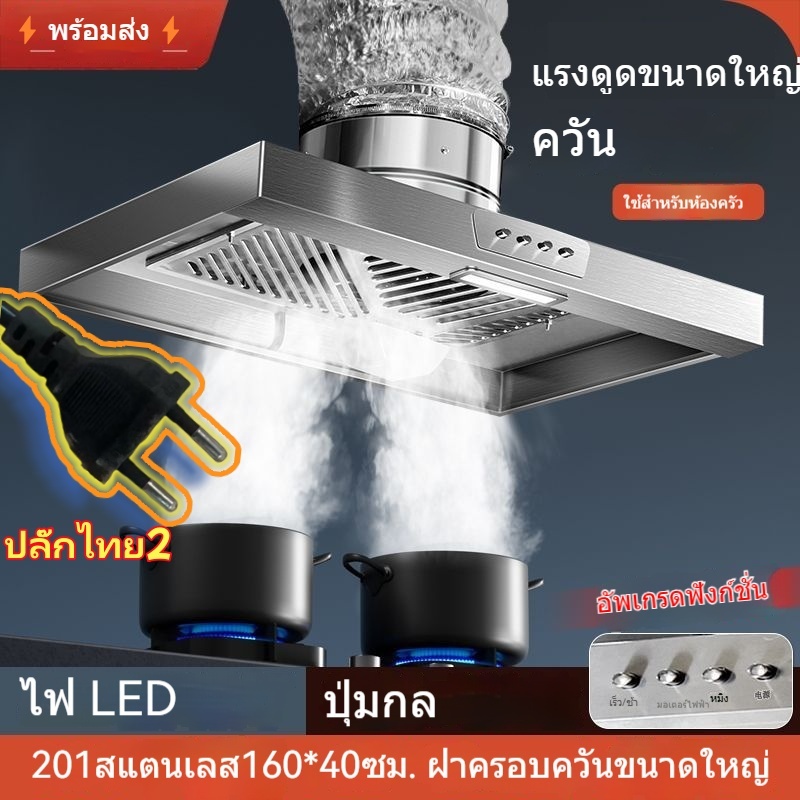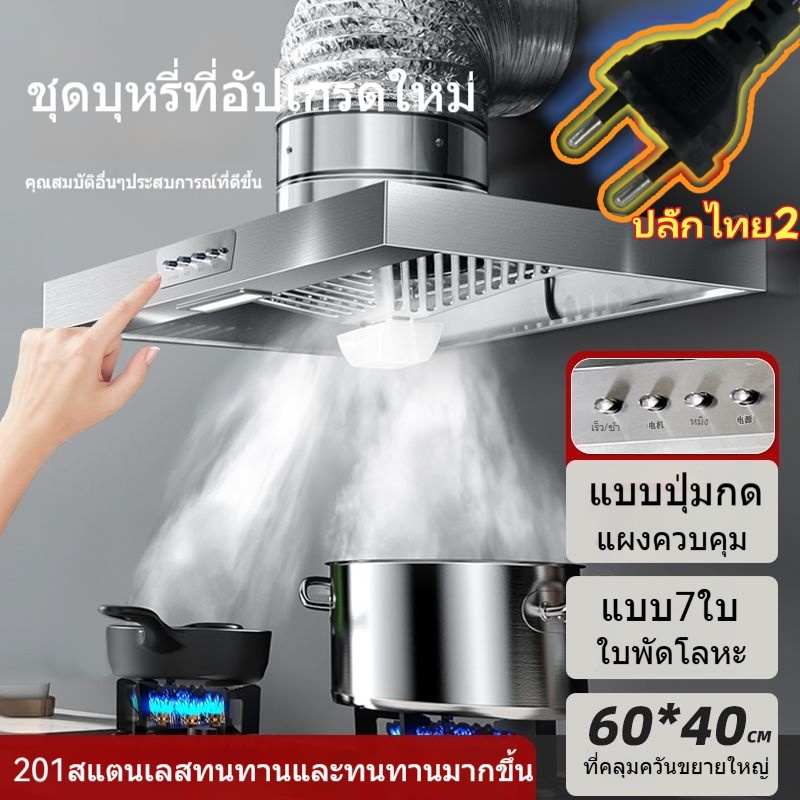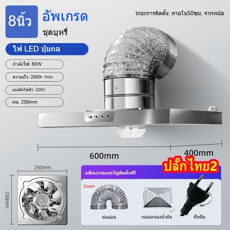 🔥NEW🔥พัดลมดูดควันสแตนเลส แบบมีปุ่มควบคุม เครื่องดูดควันในครัว เครื่องฟอกควันน้ำมัน+ ท่อ 3ม ปลั๊กไทย 2 อัน⚡พร้อมส่ง⚡