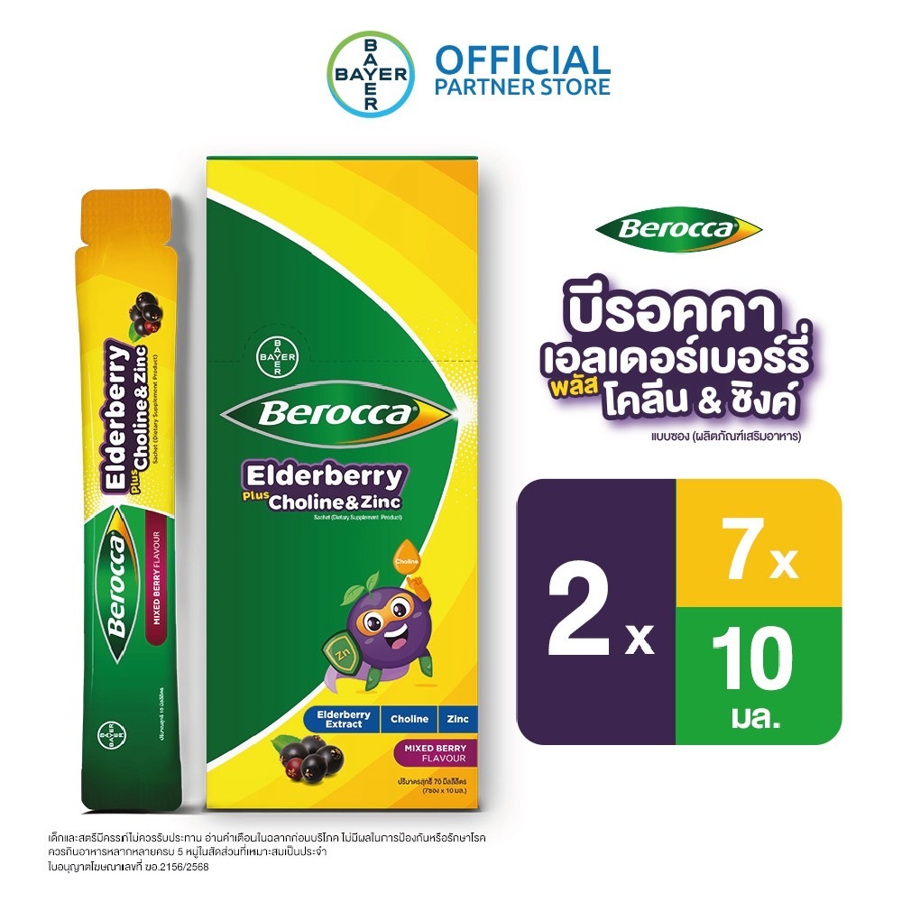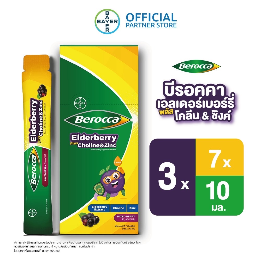 Berocca Elderberry plus Choline & Zinc sachet 10ml x 7 บีรอคคา เอลเดอร์เบอร์รี่ พลัส โคลีน แอนด์ ซิงค์ แบบซอง 10 มล. x 7