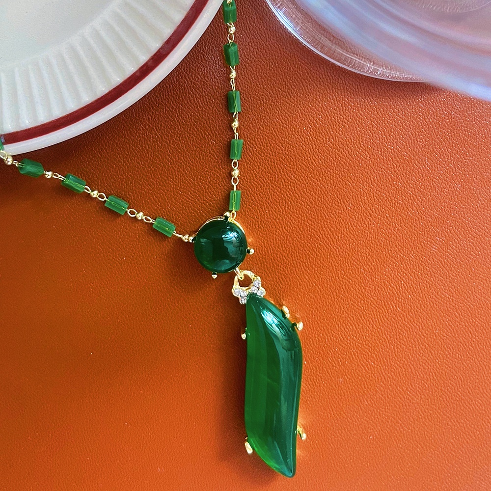 Beauty สร้อยคอโซ่ จี้หยกเทียม หรูหรา เบาสบาย แฟชั่นสําหรับผู้หญิง
