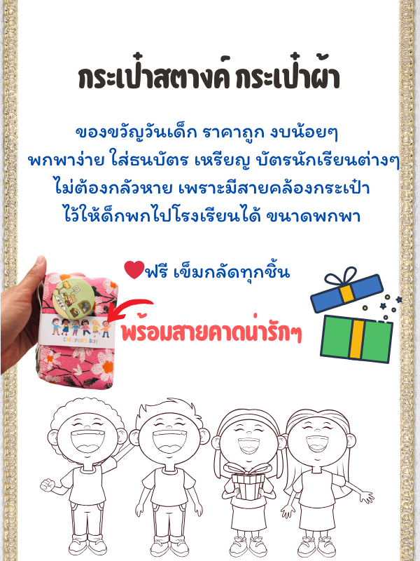 แถมฟรีเข็มกลัดญี่ปุ่น กระเป๋าสตางค์แจกเด็กลายยิบโซ ฟรีสายคาด+ซองแก้ว ของขวัญวันเด็ก วันเด็กแห่งชาติ
