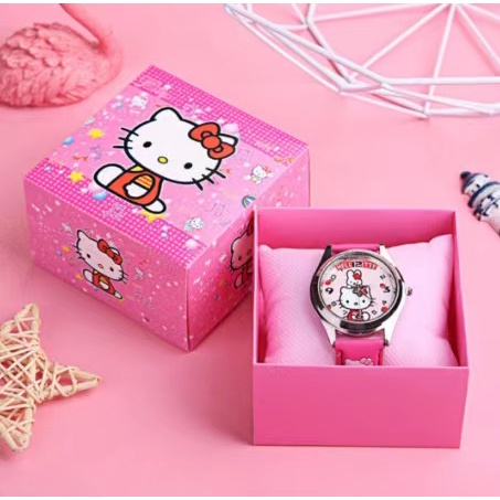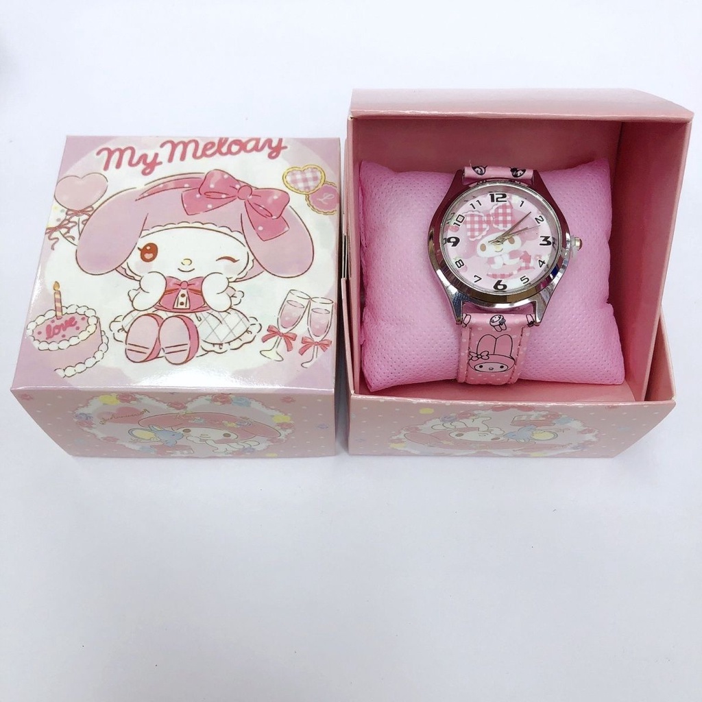 【พร้อมกล่อง】 Kuromi hello Kitty melody การ์ตูนนักเรียนประถมนาฬิกาน่ารักชายและหญิงควอตซ์ชี้ชุดของขวัญอนุบาล