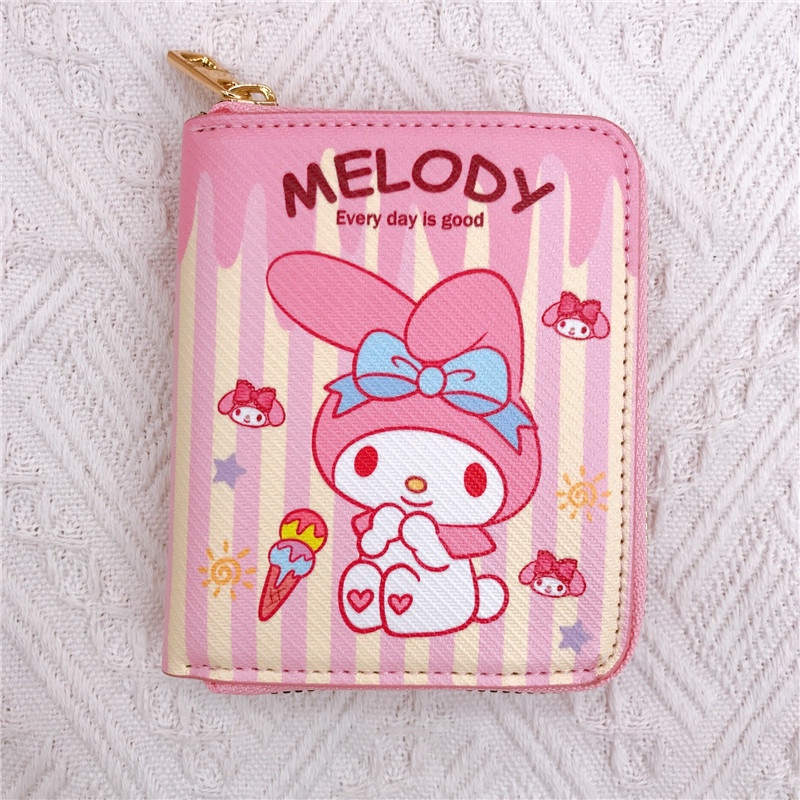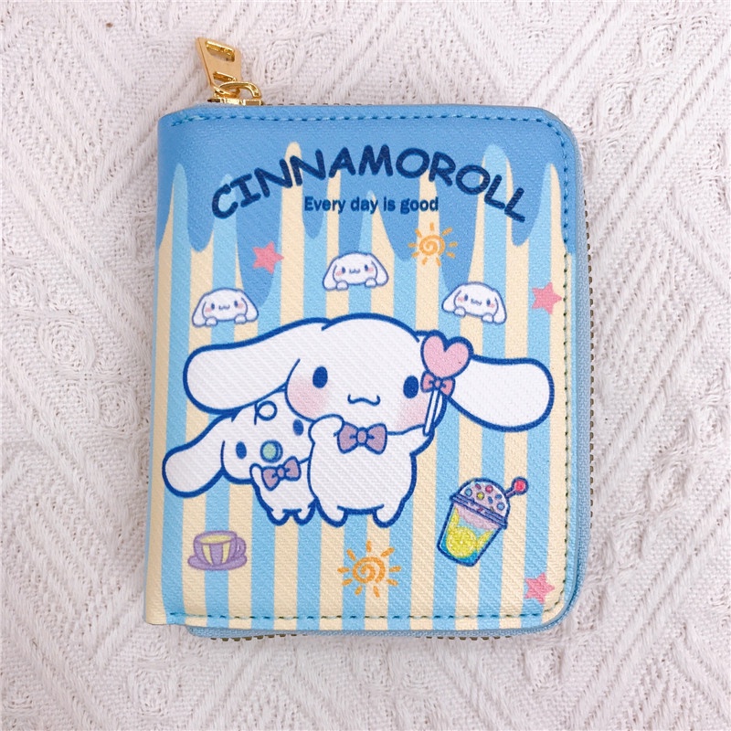 ใหม่ กระเป๋าสตางค์ หนัง PU ใบสั้น ลายการ์ตูน Cinnamoroll Pochacco kuromi Hello Kitty my melody มีซิป ใส่เหรียญได้ สําหรับเด็กผู้หญิง นักเรียน
