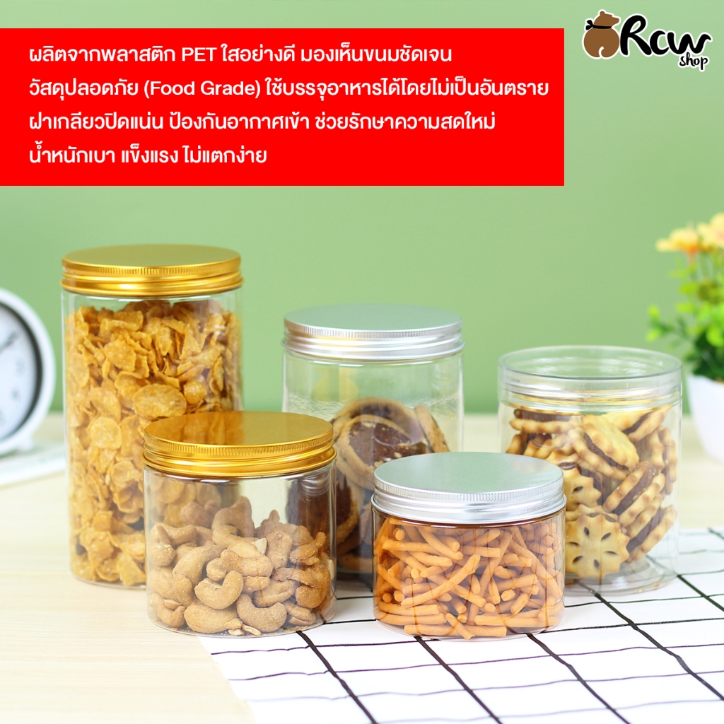 กระปุก PET (แพ็ค 2ใบ / 10ใบ) กระปุกพลาสติกฝาใส / ฝาอลูมิเนียม กระปุกใส่อาหาร ใส่ขนม