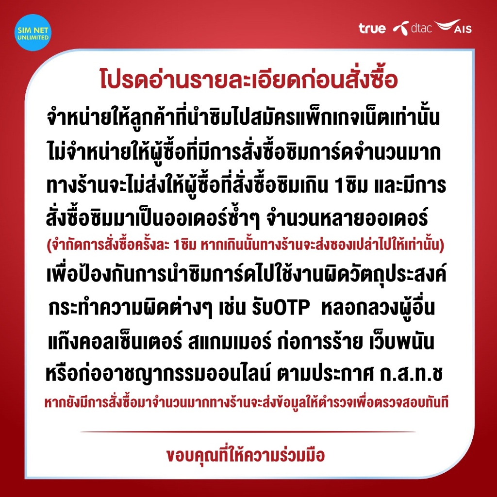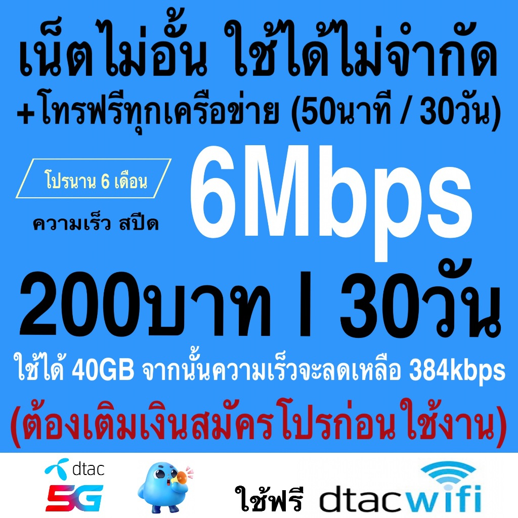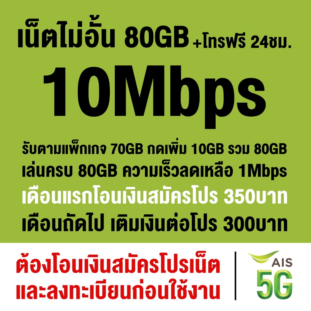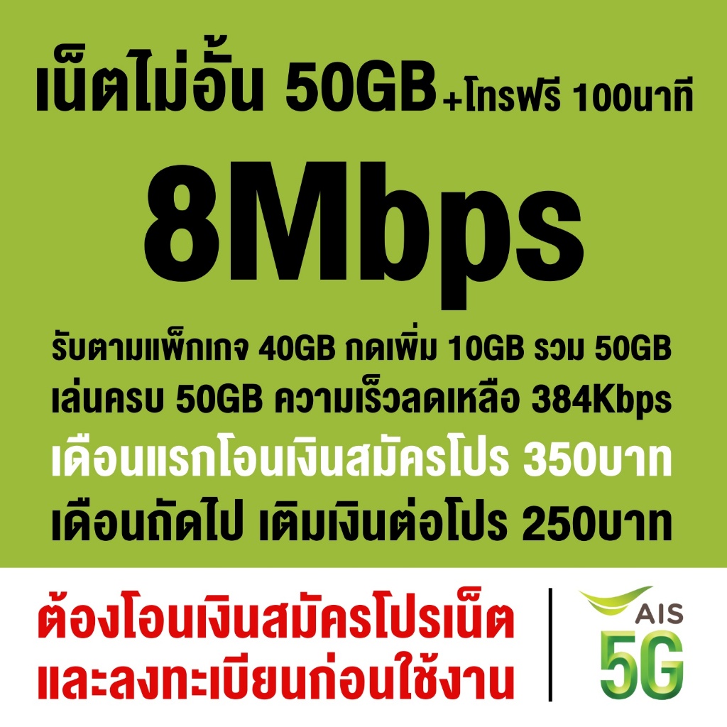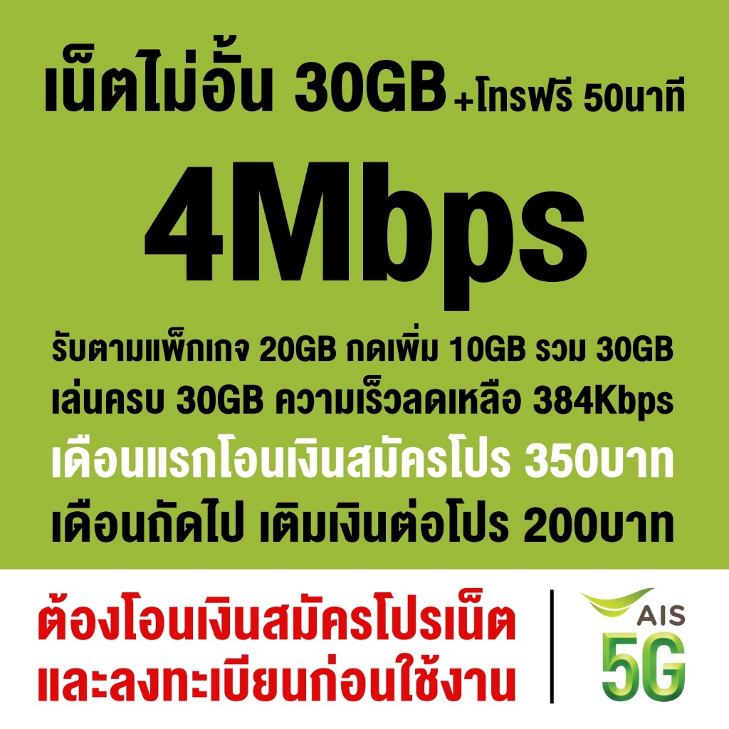 ชิมเทพ AIS เน็ตไม่จำกัด ความเร็ว 6Mbps, 15Mbps, 20Mbps (ซิมต้องเติมเงินสมัครโปรก่อนใช้งานเน็ต)