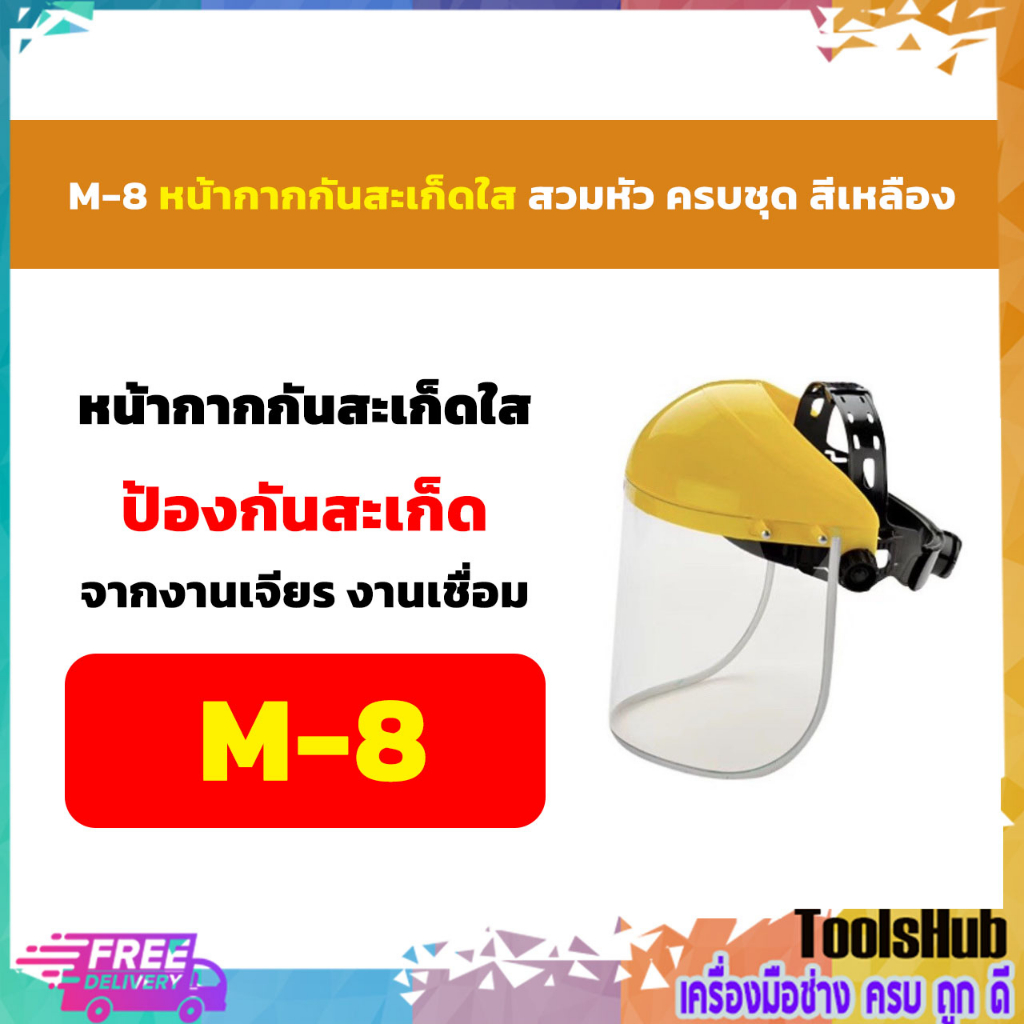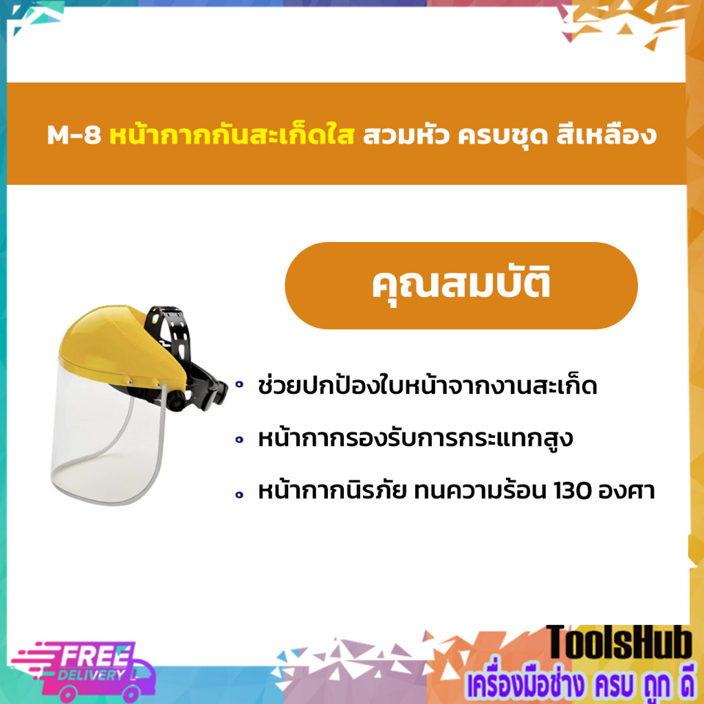 **ขายดีที่สุด**หน้ากากนิรภัย หน้ากากกันสะเก็ดใส สวมหัว ครบชุด สีเหลือง รุ่น M8