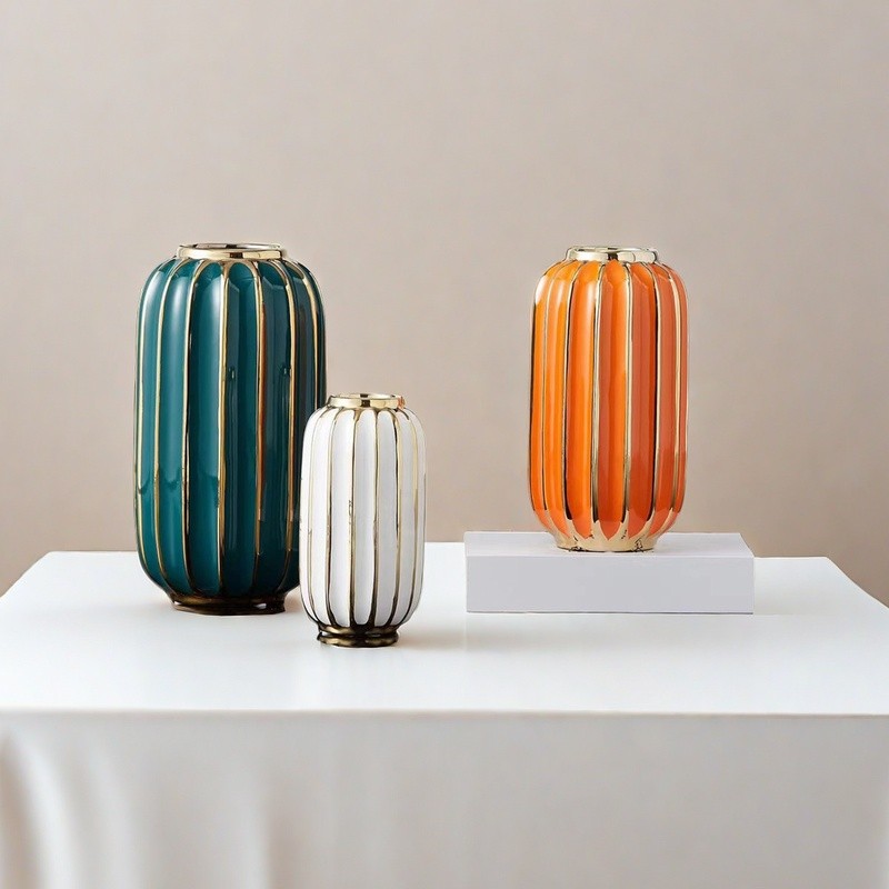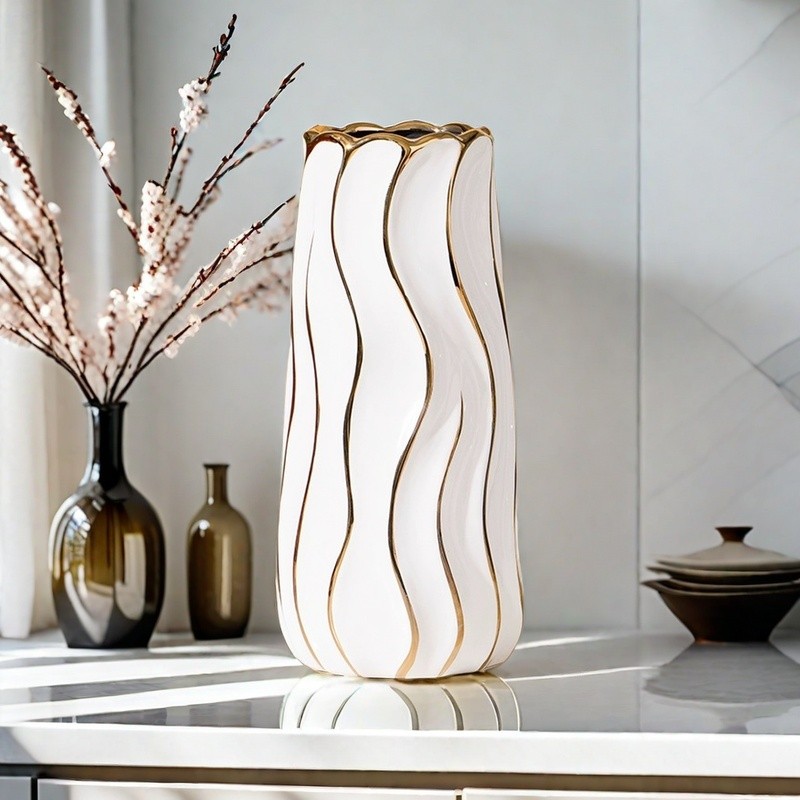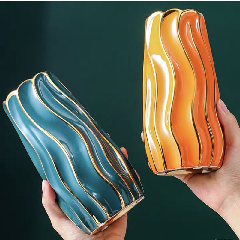 【ไทยยุ่น โฮม💕จัดส่งพัสดุไปรษณีย์ด่วน】แสงหรูหราแจกันแจกัน Simple แจกันเซรามิกคลาสสิกแจกันจัดดอกไม้เซรามิก แสงหรูหราเรียบง่ายตกแต่งห้องนั่งเล่น