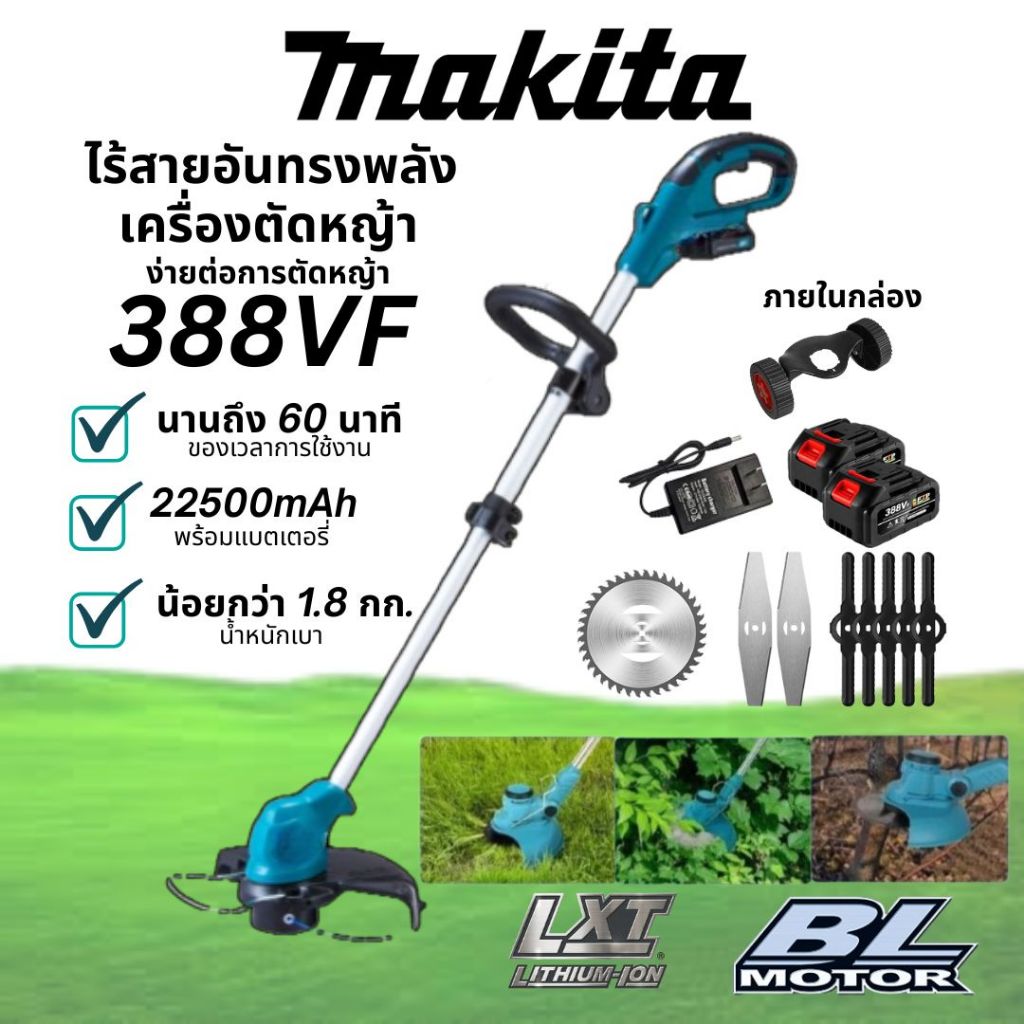 ⭐ รับประกัน 5 ปี ⭐ เครื่องตัดหญ้าไร้สาย MAKITA GRASS CUTTER 388VF (พร้อมแบตเตอรี่ 2 ก้อน) และอุปกรณ์เสริมฟรี