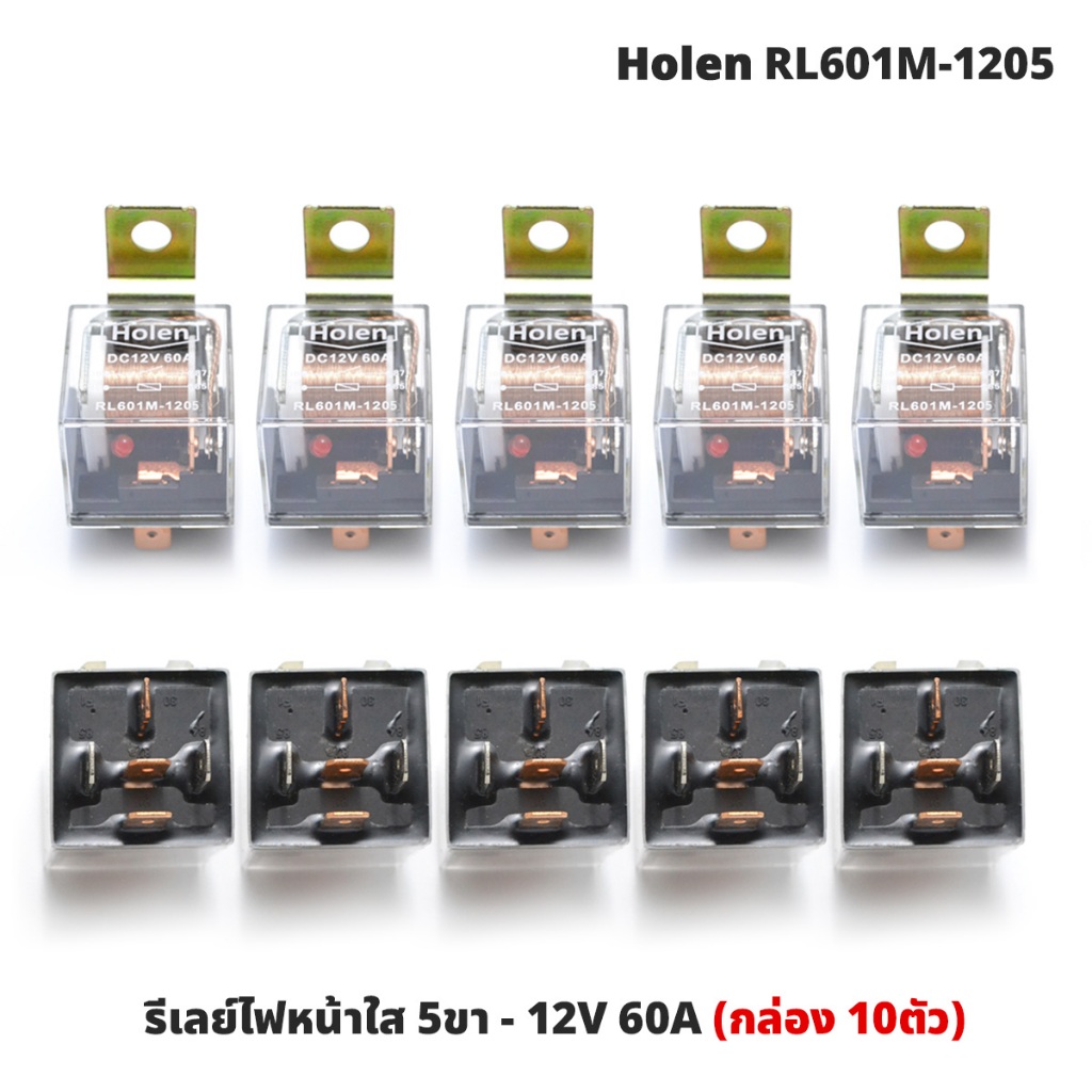 (กล่อง 10ตัว) Holen รีเลย์ไฟหน้า ใส 5ขา 12V 60A รุ่น RL601M-1205 มีหลอด LED แสดงสถาะการทำงาน