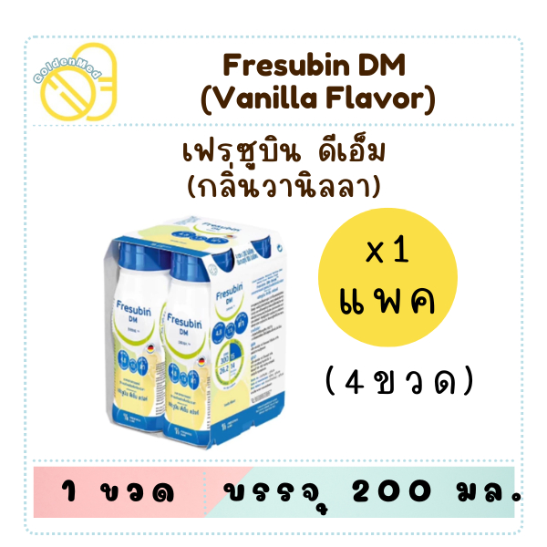 (หมดอายุ 10/26) Fresubin DM เฟรซูบิน ดีเอ็ม อาหารสูตรครบถ้วนพร้อมดื่ม กลิ่นวานิลลา 4 ขวด x200 ml