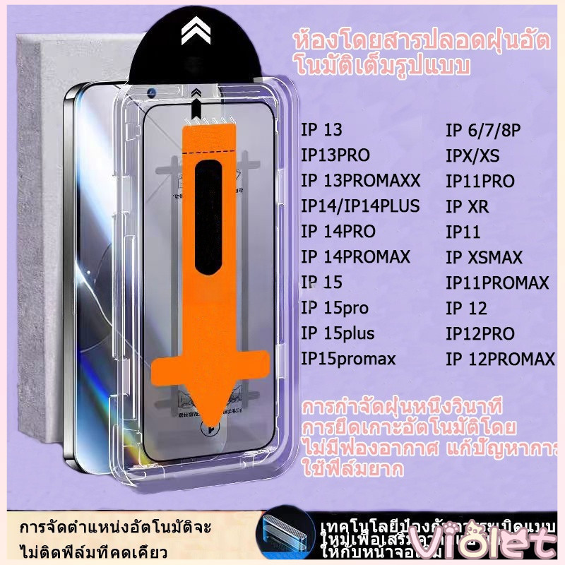 กระจกนิรภัยปกป้อง สำหรับ iPhone 14 16Pro Max 15 14 13 12 11 Xs Max 16 15 14 PRO MAX ติดตั้งง่ายอุปกรณ์กำจัดฝุ่นอัตโนมัติ