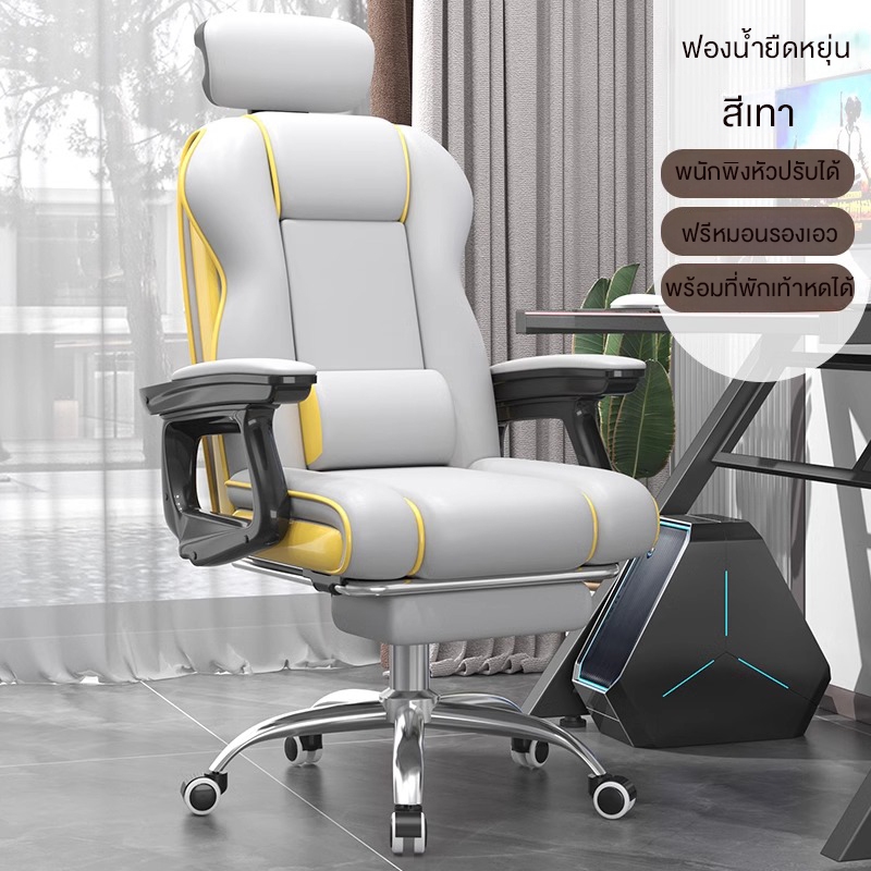 L&Q เก้าอี้คอมพิวเตอร์ เก้าอี้เกมมิ่ง ออกแบบตามหลักสรีรศาสตร์ นั่งนานไม่เม ื่อย หมุนได้ 360° แถมหมอนรองเอว