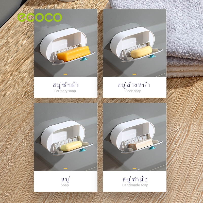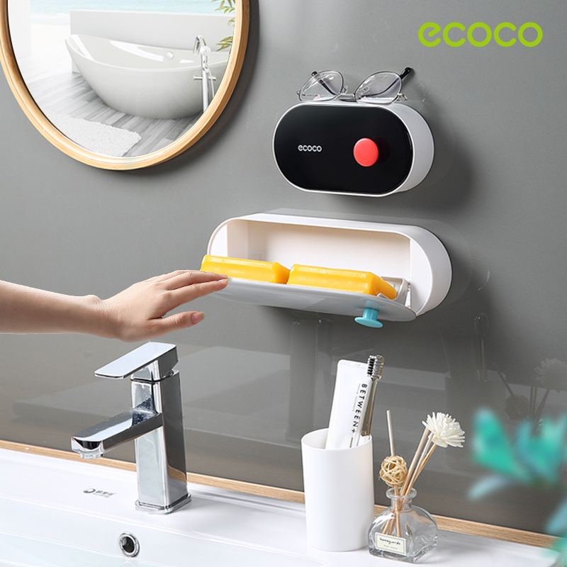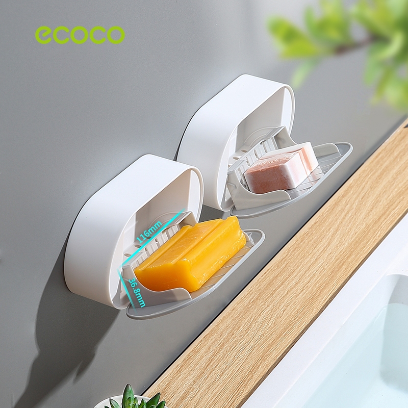 [พร้อมส่ง]ECOCO ที่วางสบู่ติดผนัง ไม่ต้องเจาะ มีฝาปิด กันความชื้น และกันน้ำ ที่วางสบู่ 2 ชั้น มีกาว E2119 E2120