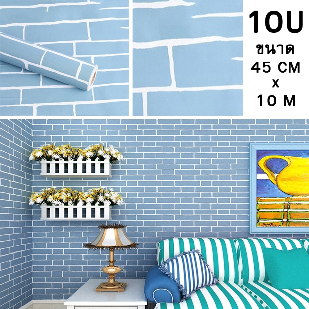 ❗วอลเปเปอร์แพ็ค3ม้วน❗ ลายอิฐ สติ๊กเกอร์วอลเปเปอร์ ติดผนัง มีกาวในตัว กันน้ำได้ Wallpaper 10 เมตร x 45 ซม