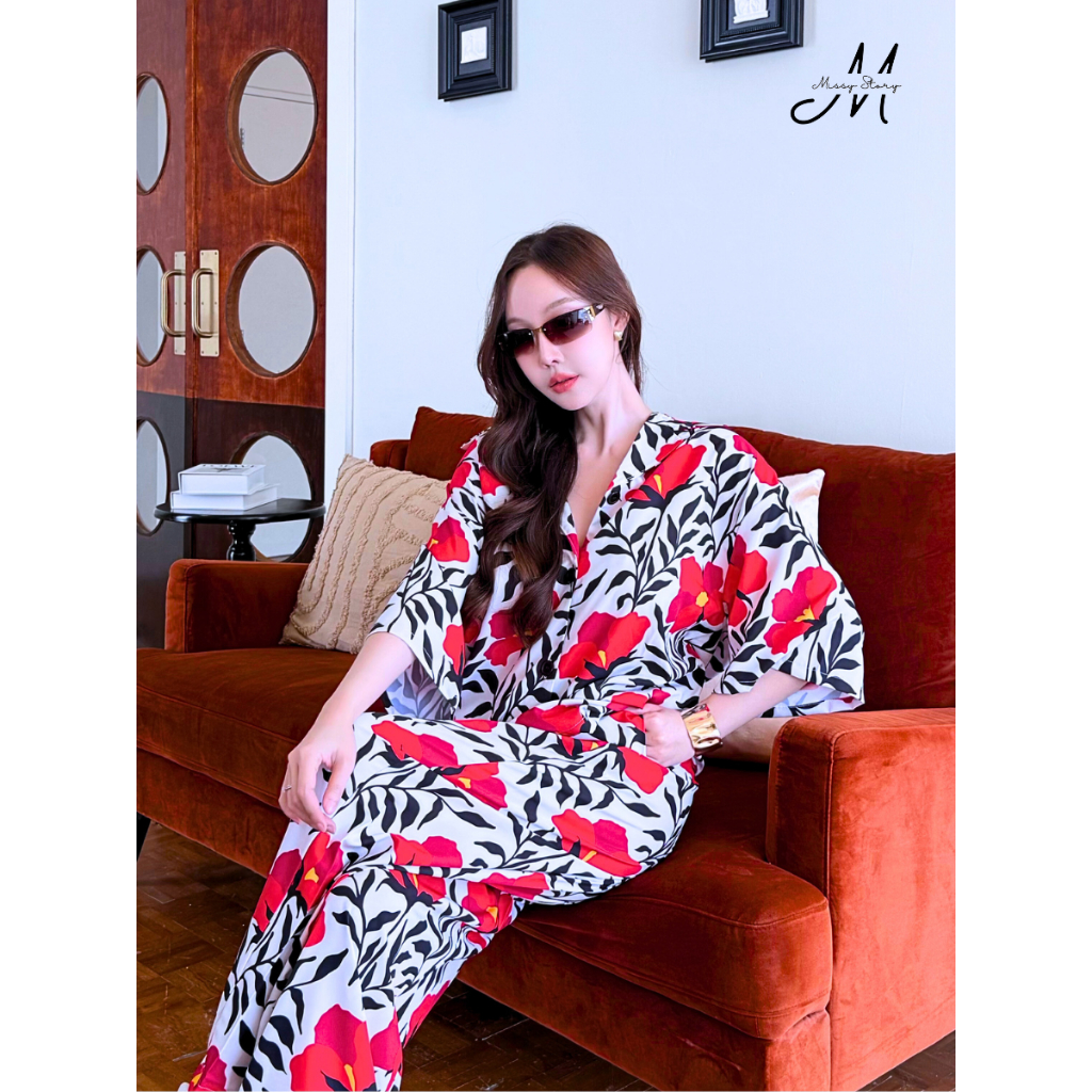 Missy Story ชุดเซตลายดอกไม้ เสื้อแขนสั้น+กางเกงขายาว