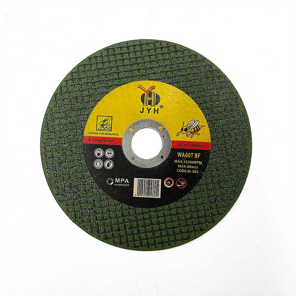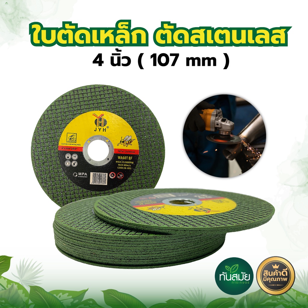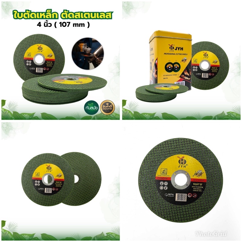 ใบตัดเหล็ก ตัดสแตนเลส JYH ขนาด4นิ้ว (ขายยกแพ็ค 25 แผ่น) คมเนื้อทรายสีเขียว ตัดสแตนเลสได้ดี ตัดทนทาน