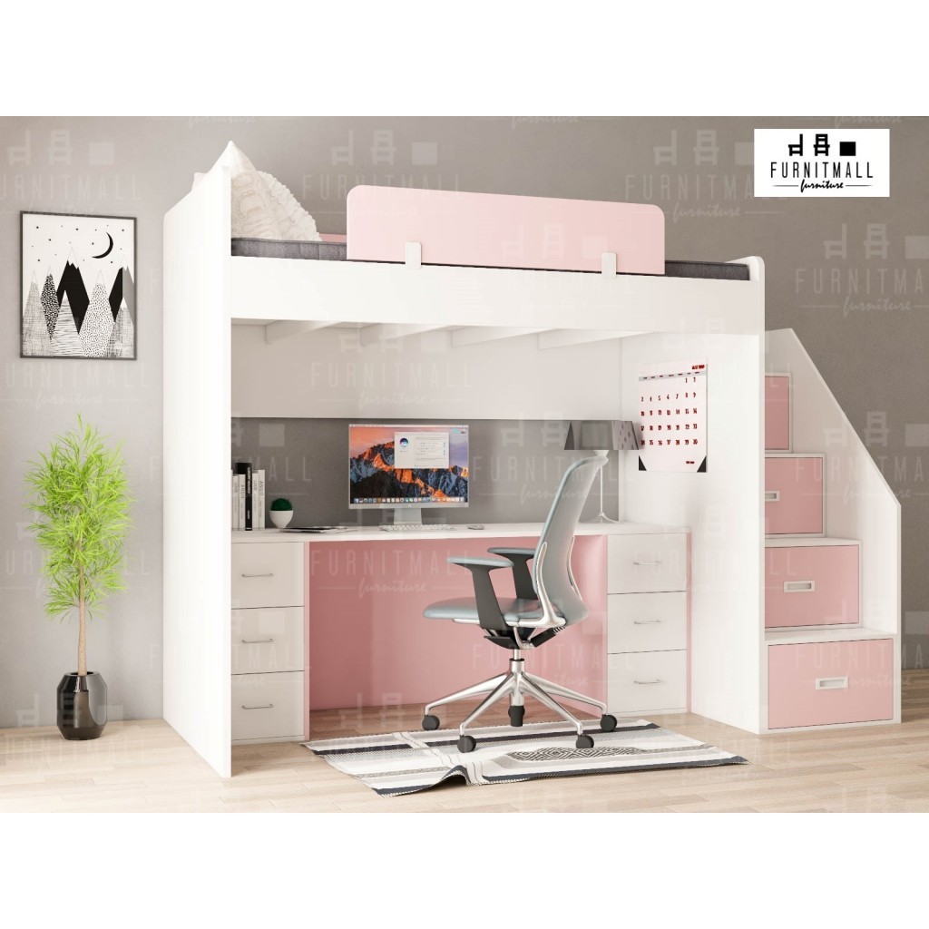 เตียงสูงพร้อมโต๊ะทำงานยาว สูงรวม 200ซม.