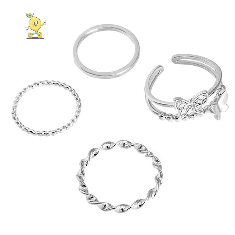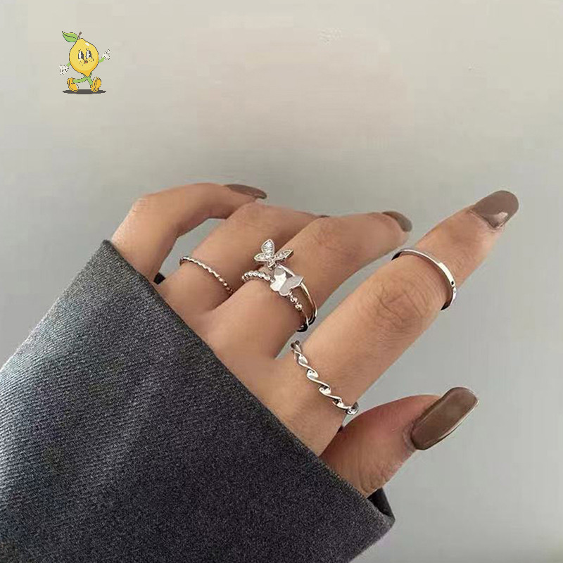 [mozh] 3 ชิ้น/4 ชิ้นฮิปฮอปพังก์เปิดแหวนปรับได้ชุดแหวนสตรีแหวนนิ้วโลหะ [TH]