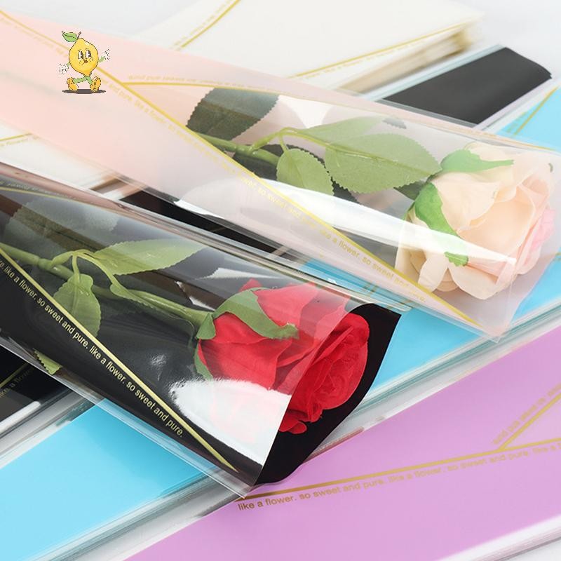 [mozh] 50 ชิ้นแขนกุหลาบเดี่ยวถุงห่อดอกไม้ถุงบรรจุภัณฑ์ช่อดอกไม้ใส Cellophane ห่อดอกไม้สําหรับวันวาเลนไทน์ [TH]