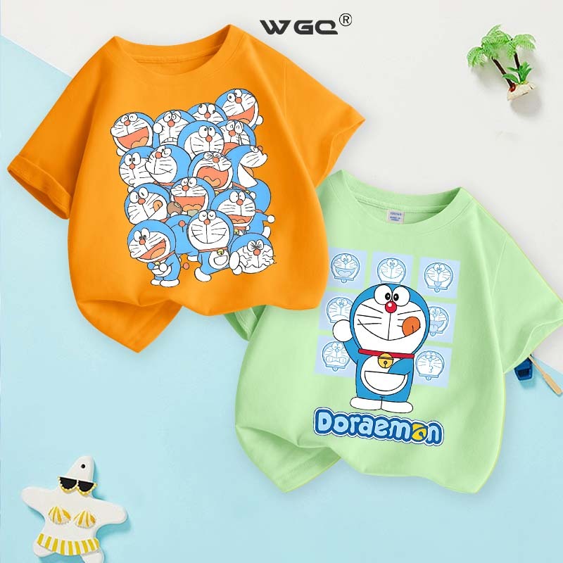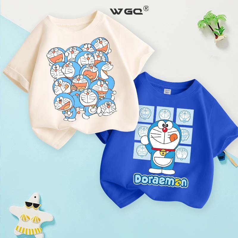 Wgq Boys เสื้อยืดเด็กชายแขนสั้นเสื้อผ้าเด็กผู้ชายผ้าฝ้ายพิมพ์ลาย