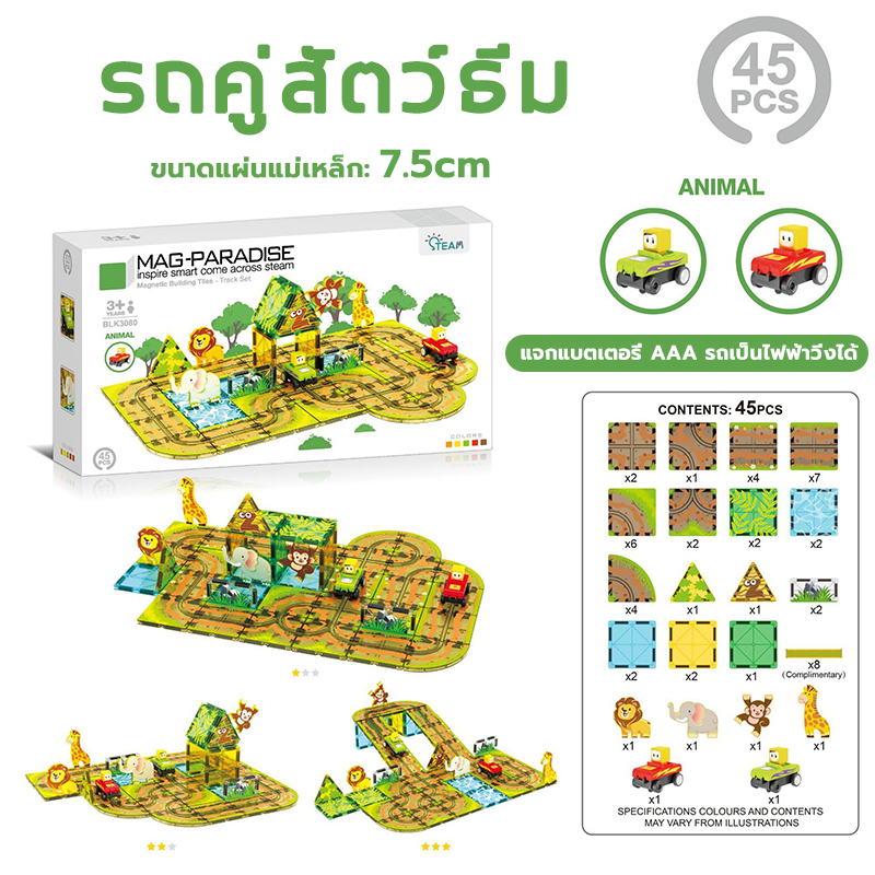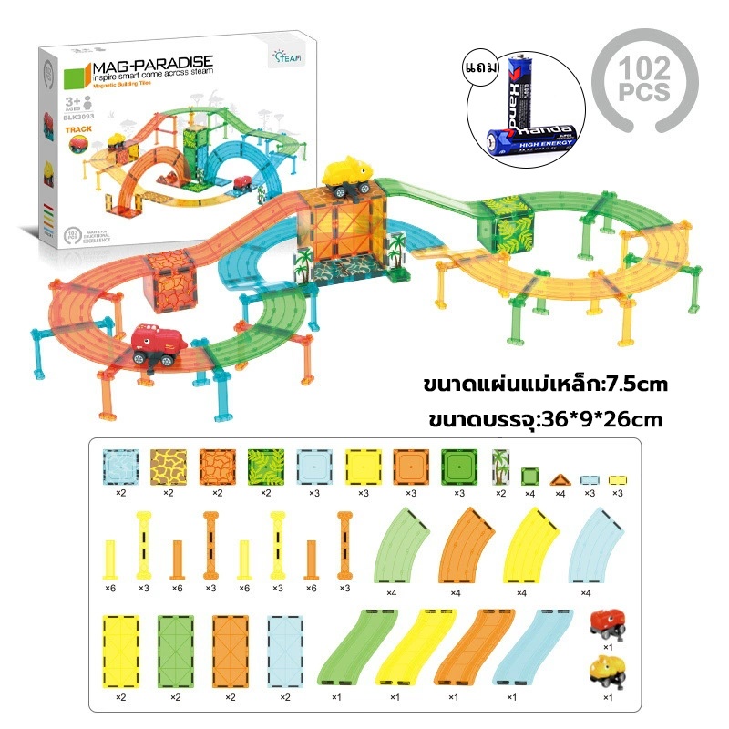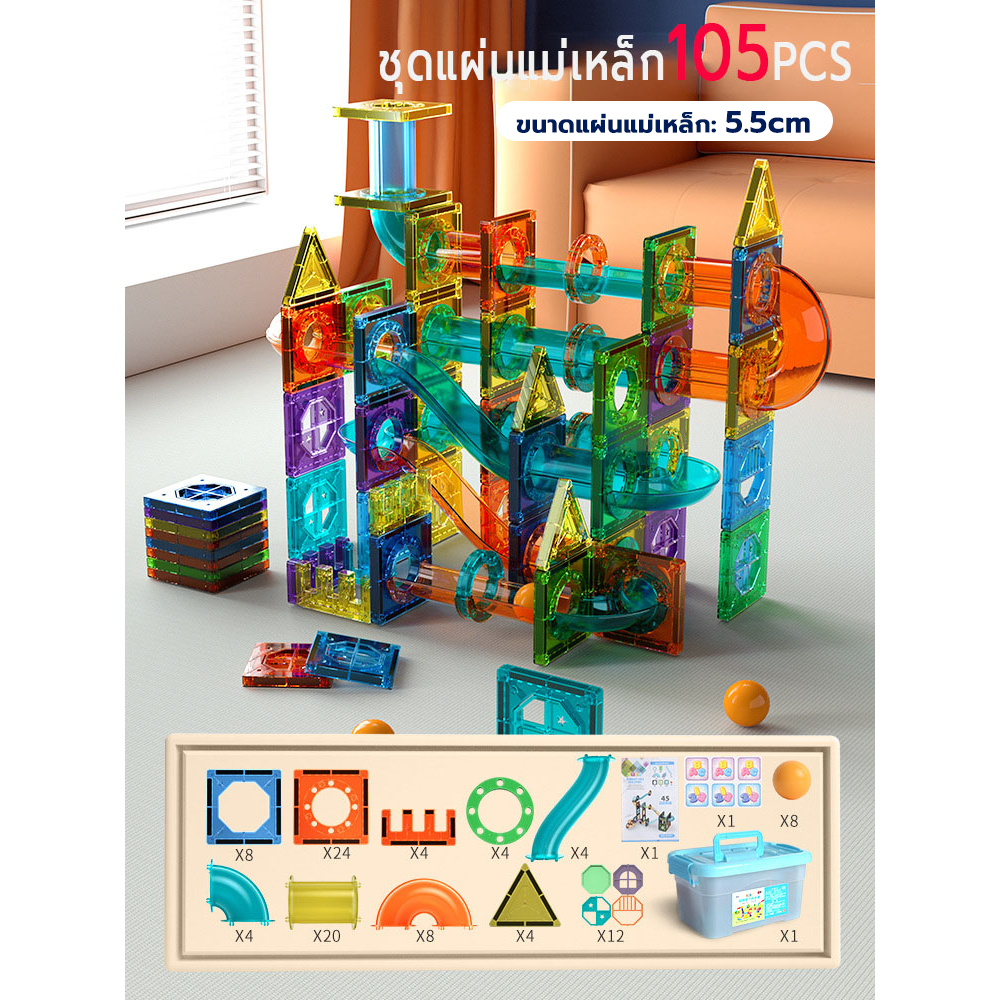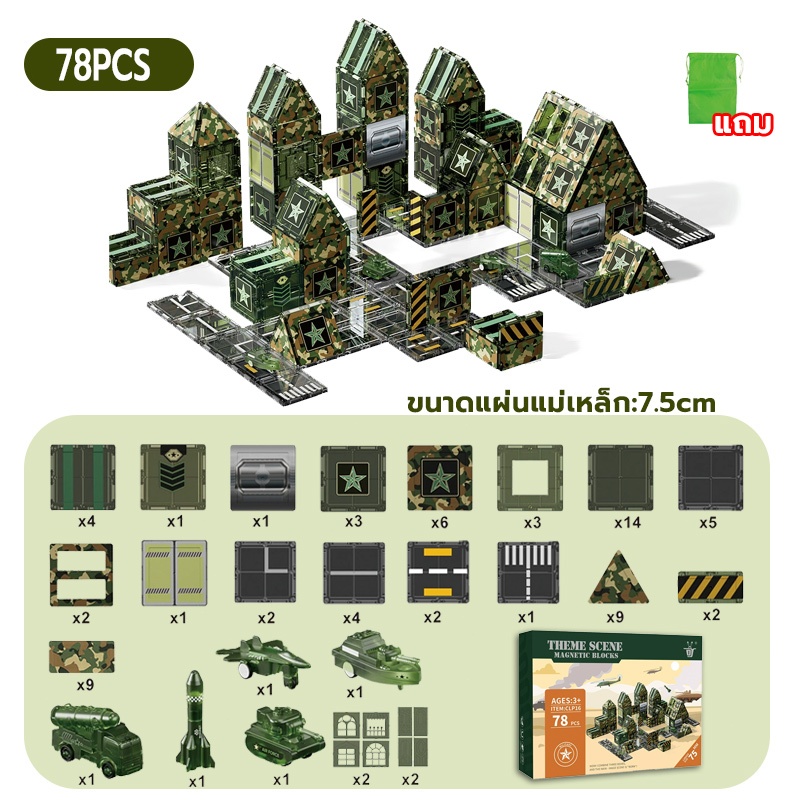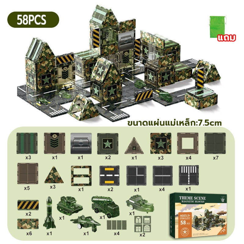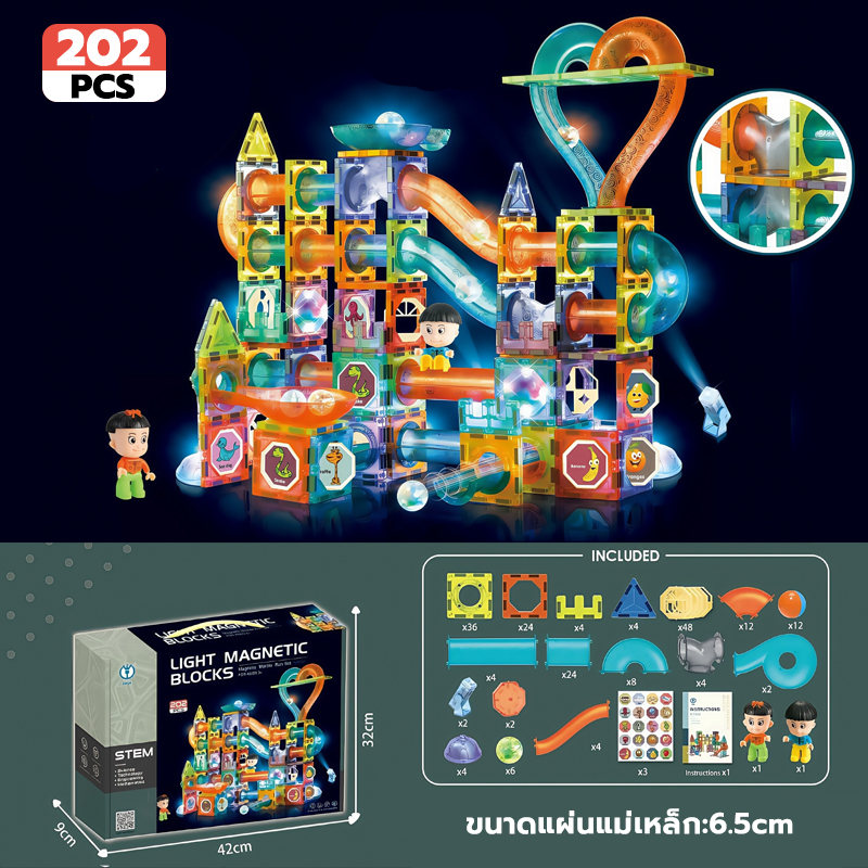 (พร้อมส่ง) พร้อมไฟ magnetic tiles block ของแท้ magnet ของเล่น diy ขนาดใหญ่ 7.5cm puzzle เกมแม่เหล็ก