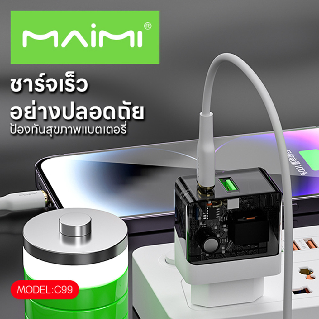 Maimi หัวชาร์จ PD 20W (รุ่น C99) หัวชาร์จ 2พอร์ท หัวชาร์จเร็ว หัวชาร์จแบบมีไฟ สินค้ามีการรับประกันคุณภาพ