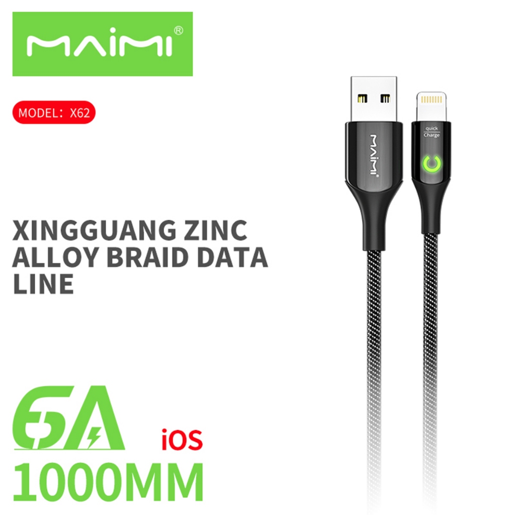 Maimi สายชาร์จ 6A (รุ่นX62) (สายUSB) สีดำ ยาว 1เมตร สินค้ามีการรับประกันคุณภาพ