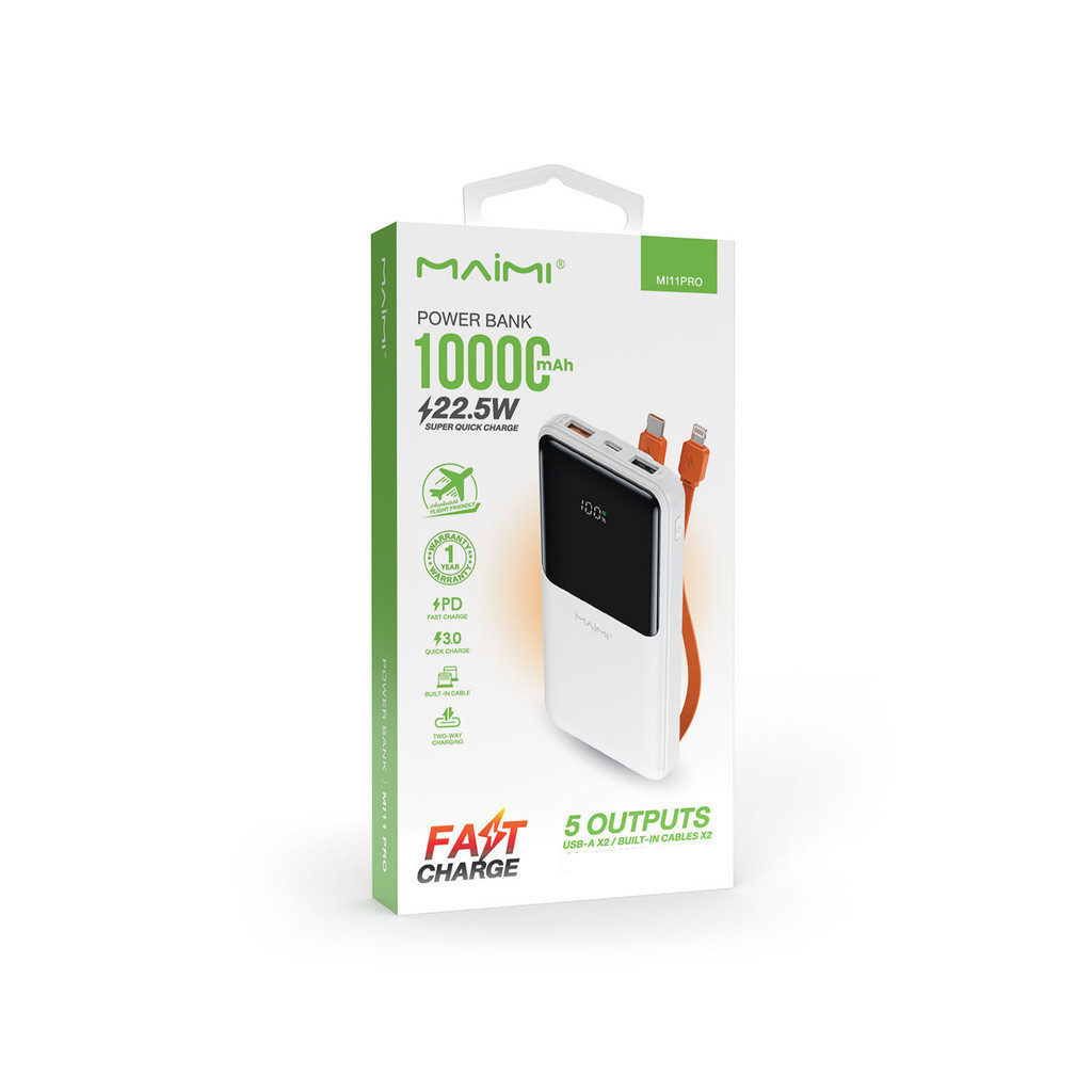 Maimi พาวเวอร์แบงค์ 10000mAh (รุ่น Mi11pro) ชาร์จเร็ว! หน้าจอแสดงผล เปอร์เซ็นต์แบตเตอรี่ ประกัน 1ปี