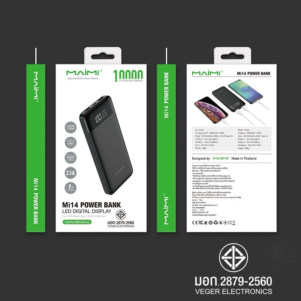 Maimi พาวเวอร์แบงค์ 10000 mAh (Maimi รุ่น Mi14) แบตสำรอง หน้าจอแสดงผล สินค้ามีการรับประกัน 1ปี