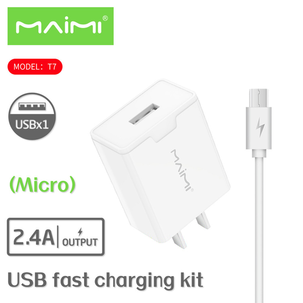 Maimi ชุดชาร์จ 2.4A (รุ่นT7) หัวพร้อมสาย หัวชาร์จ USB 1 พอร์ท สินค้ามีการรับประกันคุณภาพ