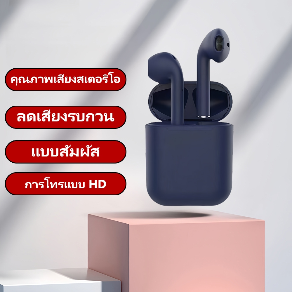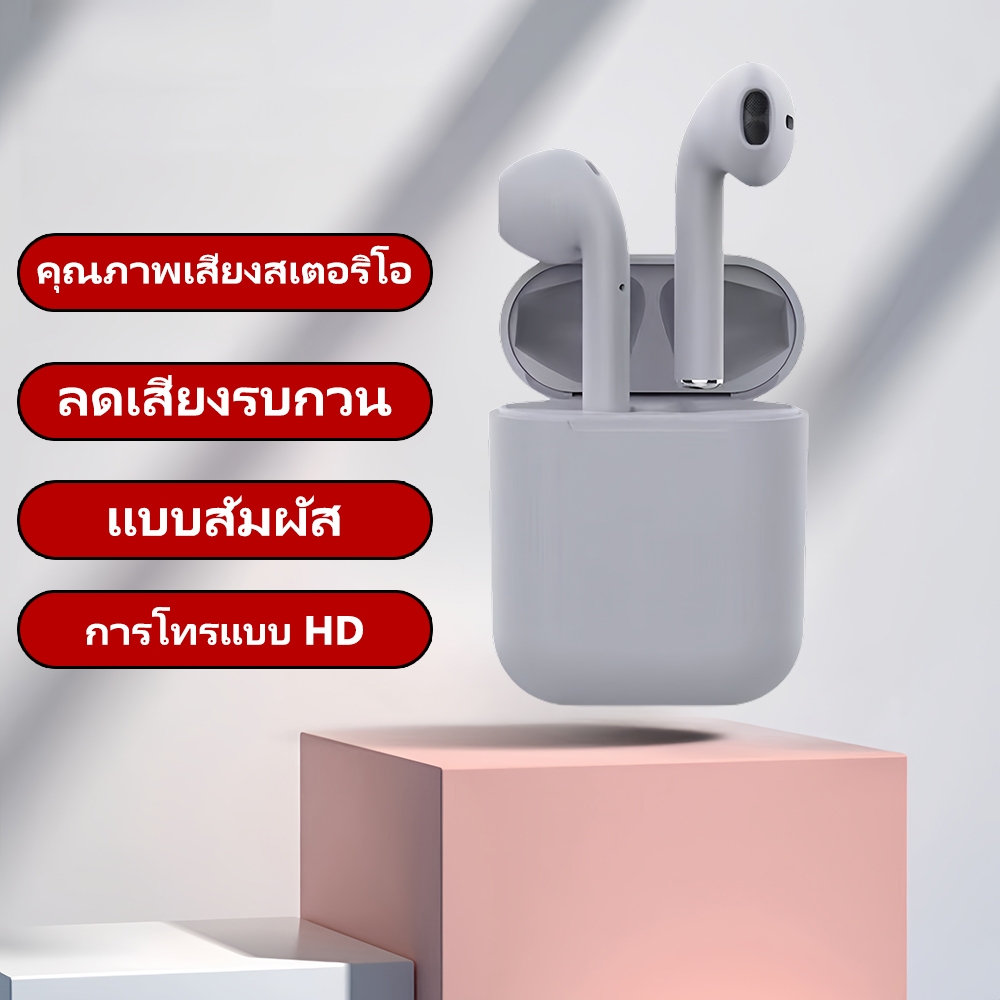 i12 Tws หูฟังไร้สายสเตอริโอบลูทูธชุดหูฟังหูฟังพร้อมกล่องชาร์จสําหรับโทรศัพท์ เหมาะสำหรับโทรศัพท์มือถือทุกชนิด COD
