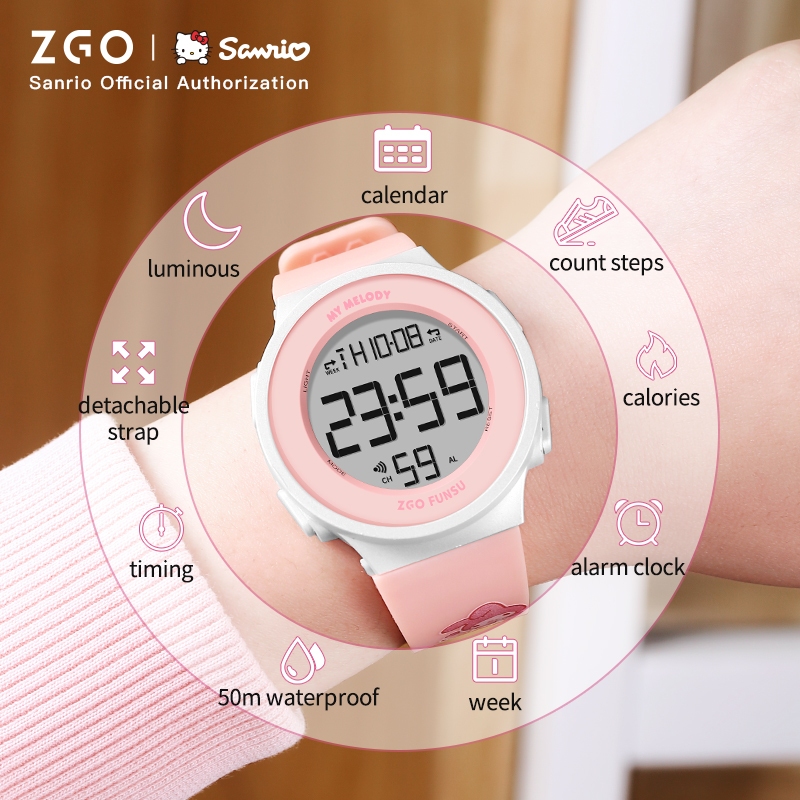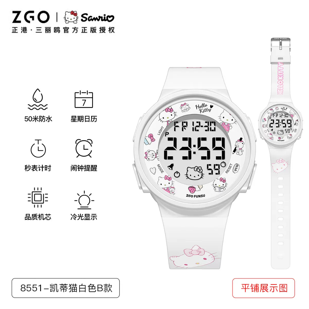 ZGO x Sanrio HelloKitty นาฬิกา ดิจิตอล กันน้ำ อเนกประสงค์ สำหรับ เด็ก นักเรียน หญิง ของขวัญ เด็ก 8551
