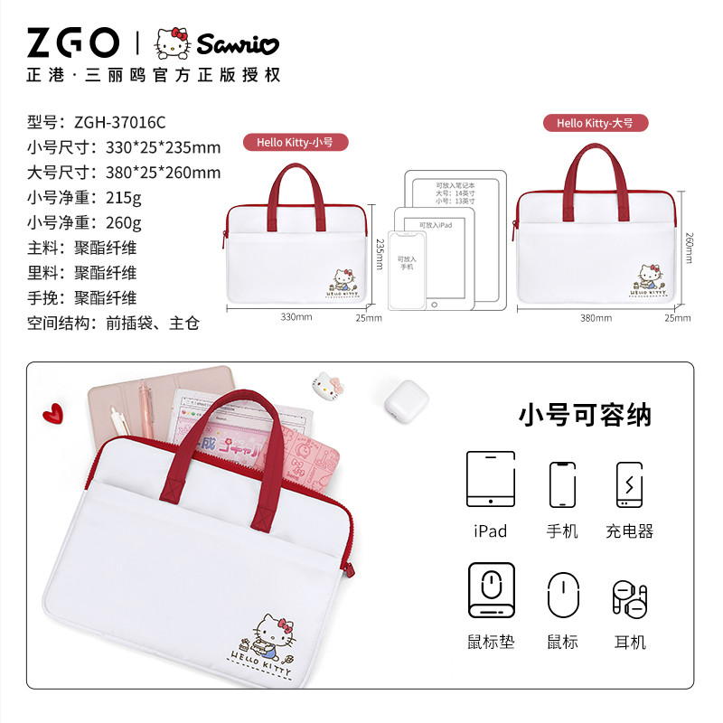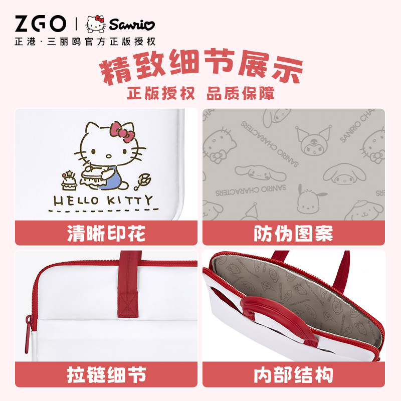 ZGO Sanrio กระเป๋าถือ Hello Kitty สำหรับคอมพิวเตอร์และแท็บเล็ต เหมาะสำหรับนักเรียนและการเดินทาง 37016C