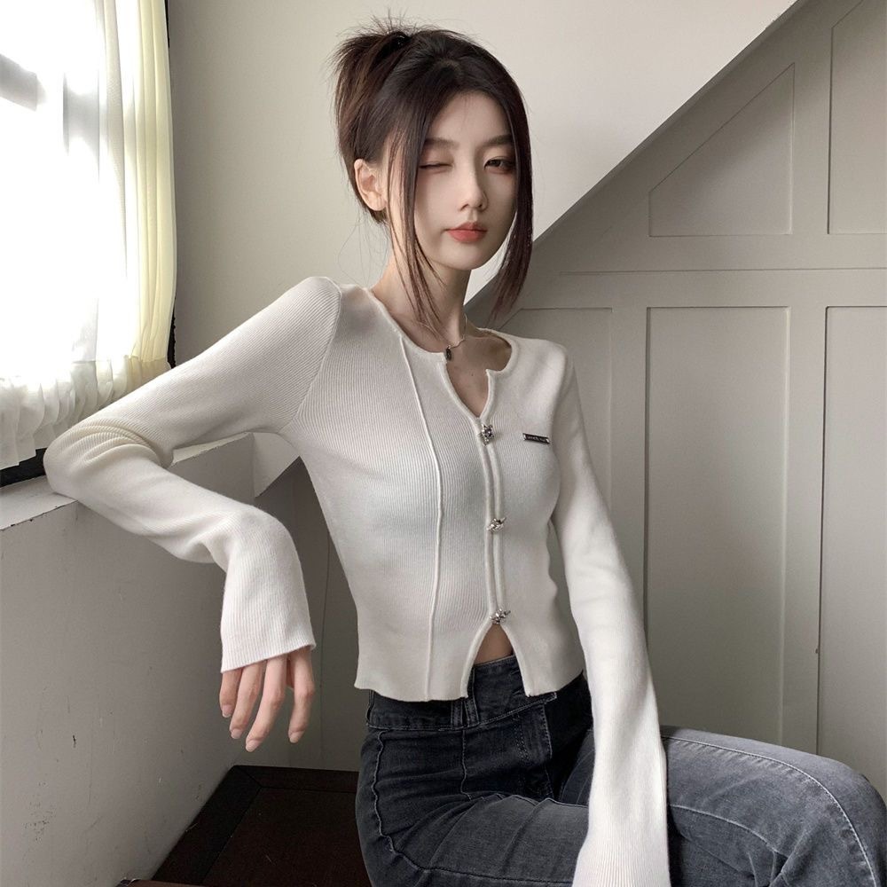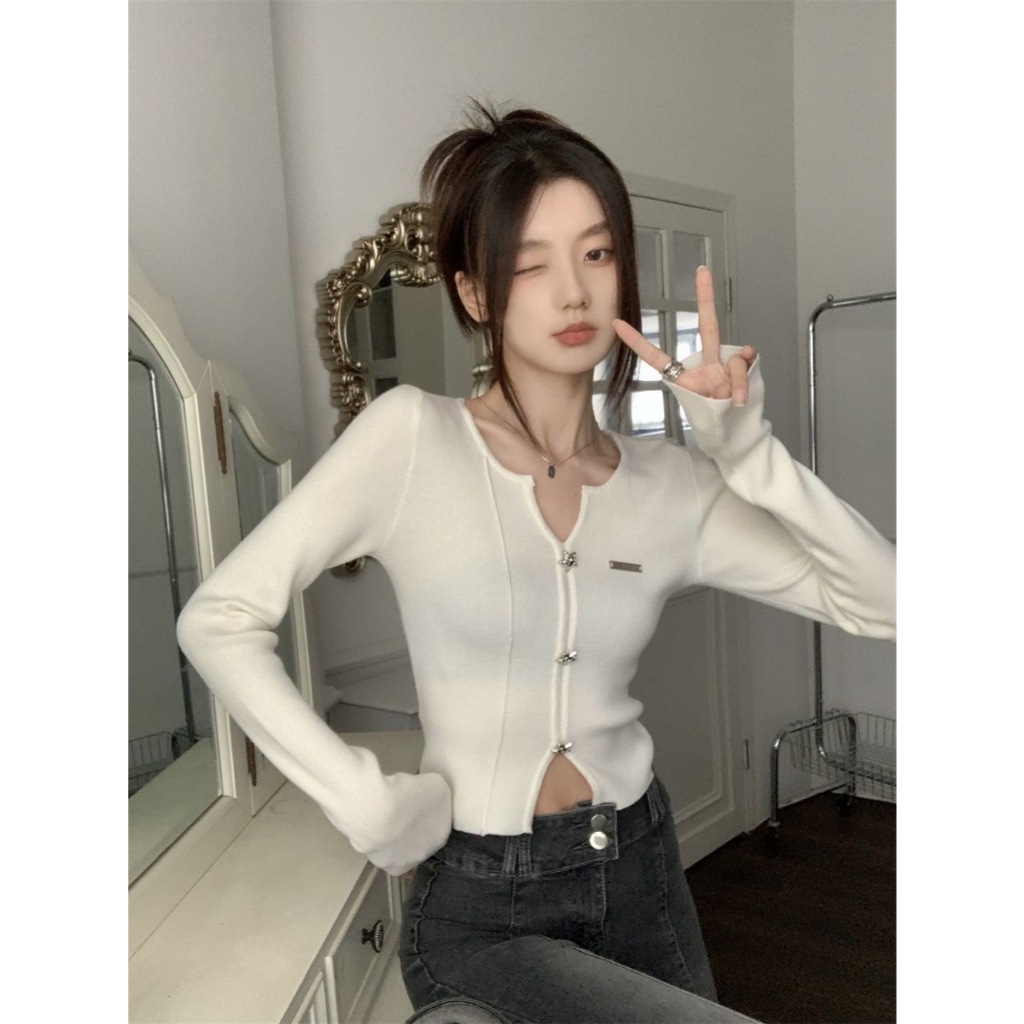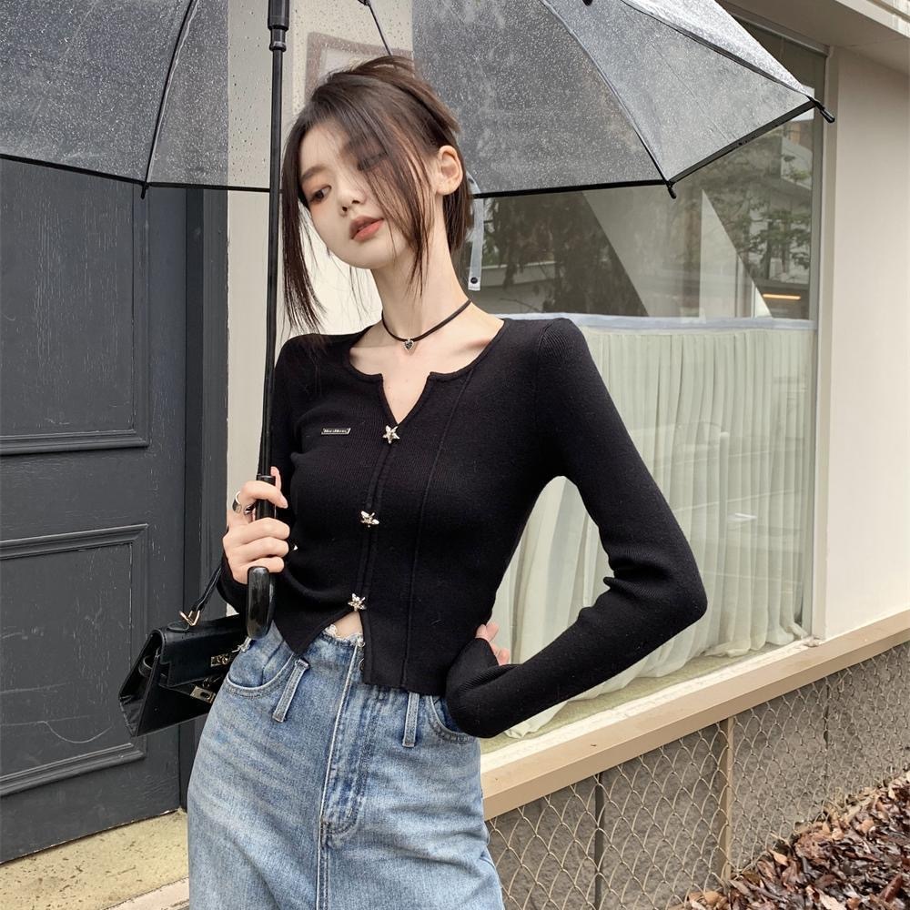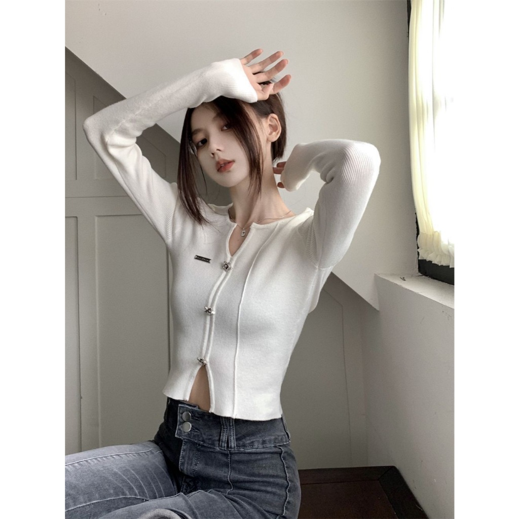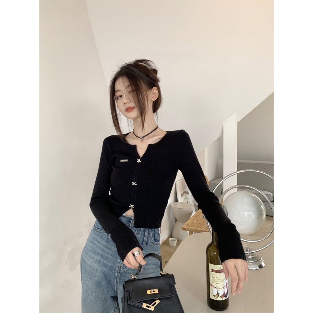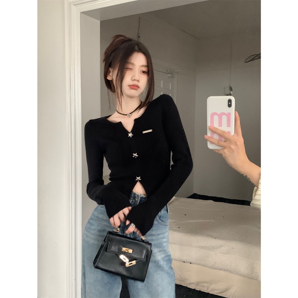 [Sheing office]🌟พร้อมส่ง🌟เสื้อคอวีผู้หญิงเกาหลีสุดฮอต ดีไซน์เฉพาะตัว เสื้อท่อนบนสีขาวดำ