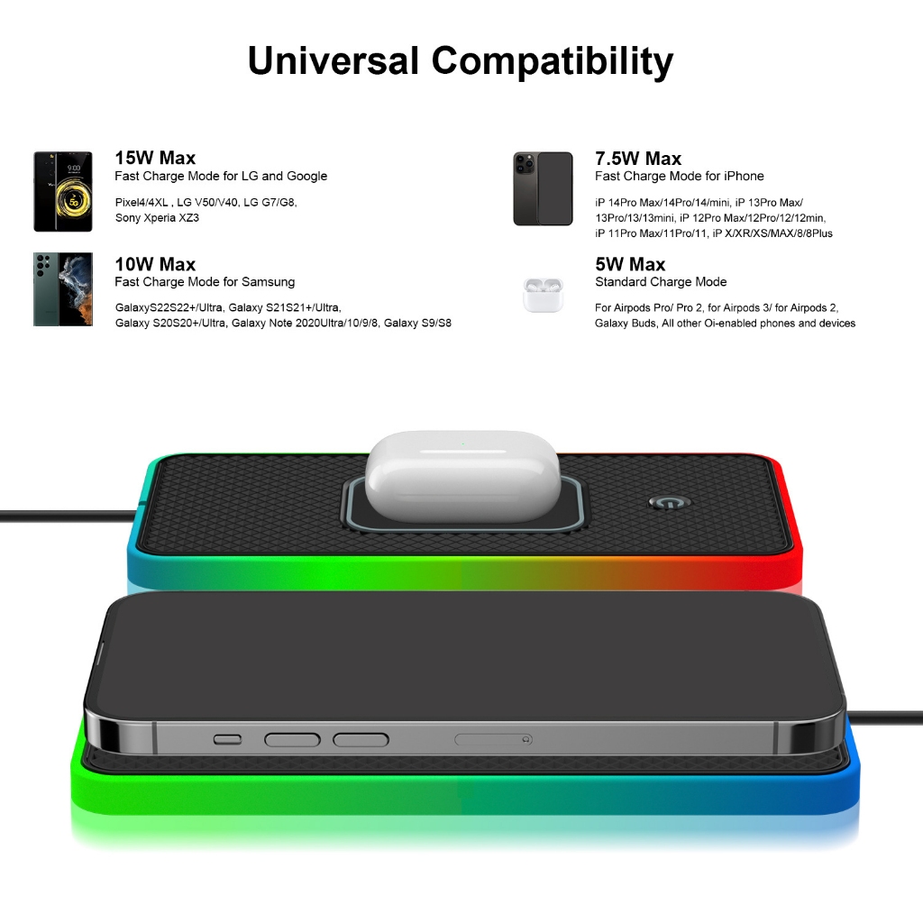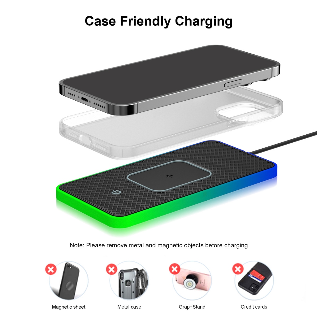 20ว รถชาร์จไร้สายแผ่นชาร์จเร็วซิลิโคนกันลื่นแท่นชาร์จไร้สายพร้อมไฟสี RGB