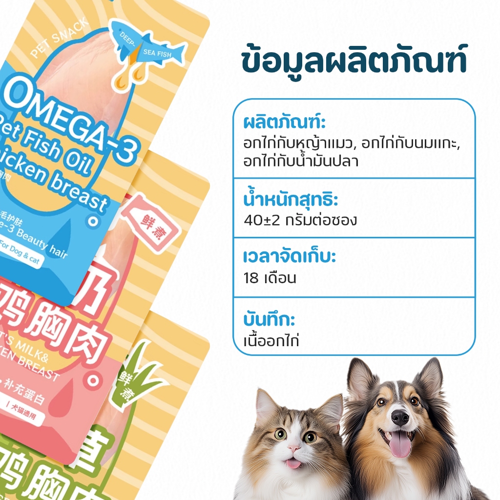 อกไก่ต้ม อกไก่แมว ขนมแมว ขนมหมา อกไก่คลีน ของแมว อาหารแมว ของใช้แมว อาหารเปียกแมว ข นมสำหรับสุนัขและแมว 40 กรัม