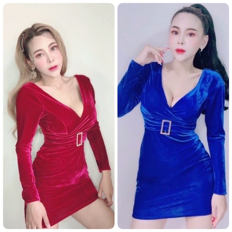 K24 ชุดเดรสออกงานผ้ากำมะหยี่ยืดแขนยาว ทรงสั้นรัดรูป ใส่สวยเซ็กซี่ เนื้อผ้ากำมะหยี่หนายืดเยอะ เที่ยวกลางคืน พริตตี้ mc pr