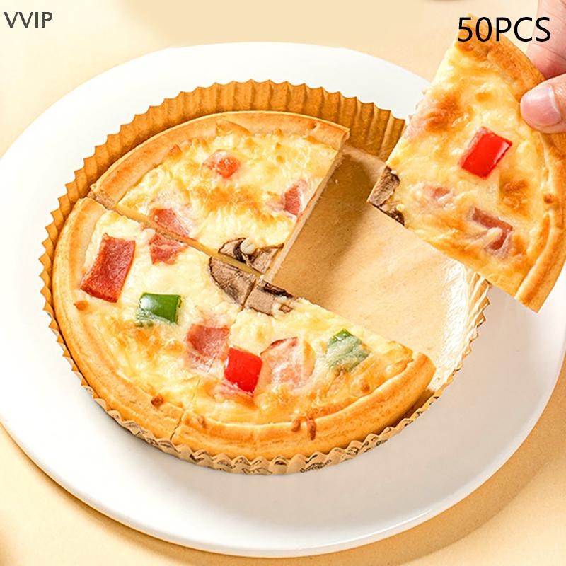 VVTH 50PCS พิซซ่าน้ํามันหลักฐานกระดาษ Air Fryer กระดาษวงกลมแผ่นเบเกอรี่บาร์บีคิวน้ํามันหลักฐานฟิล์มกระดาษครัวพิซซ่าอุปกรณ์เสริม VVTH