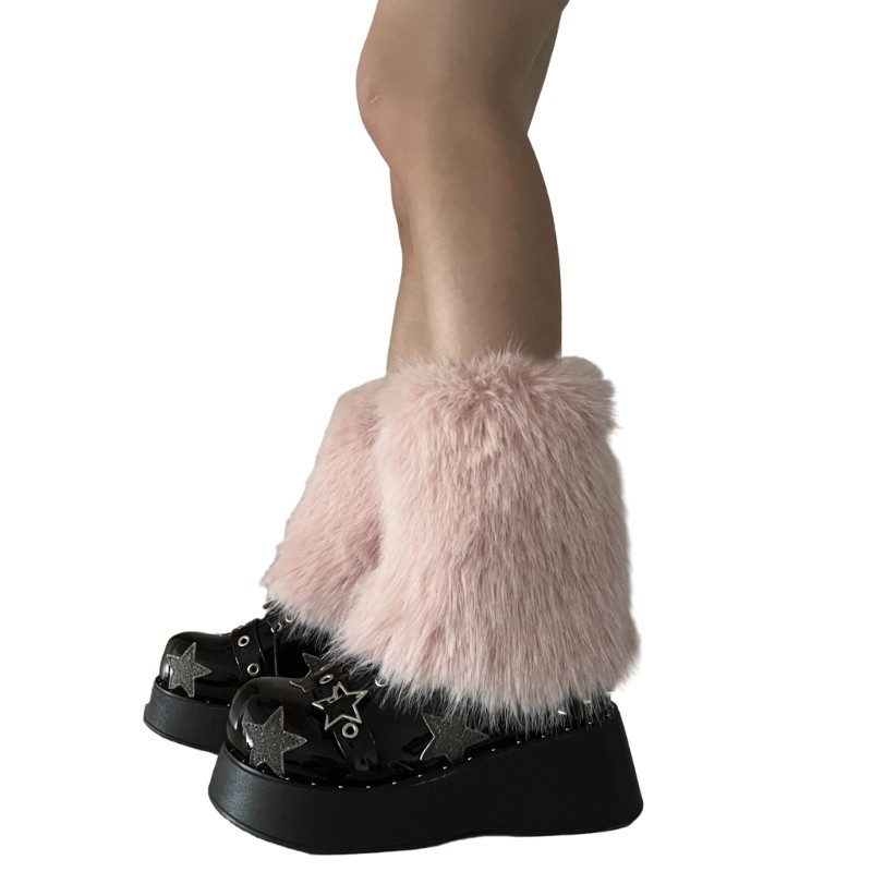 Nice Y2K Furs ขาอุ่นฤดูหนาว Furry ยาว Boot Cuffs Fuzzy รองเท้า Party เครื่องแต่งกาย