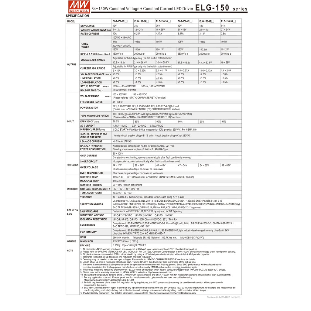 ELG-150 150W MEAN WELL เอาต์พุตเดี่ยวปรับ Switching Power Supply 12/24/36/42/48/54V Meanwell กันน้ํา LED Driver IP67