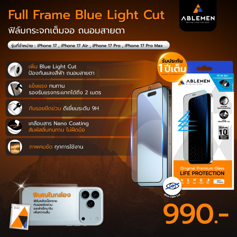 >มีส่งด่วน< Ablemen Boxset FF 2X BLC Set ฟิล์มกระจกเต็มจอ For iPhone 17 Pro Max / 17 Pro